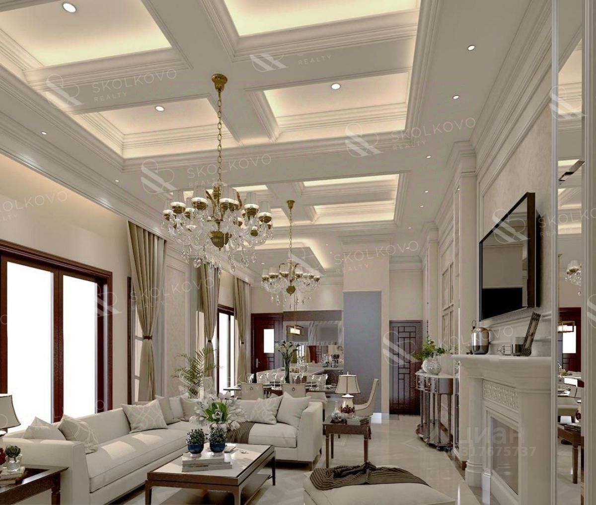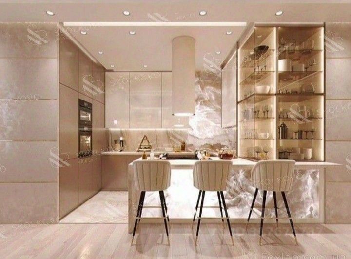 Первый этаж: просторная кухня, столовая и гостиная с выходом на участок и террасу, где можно проводить время с семьей и друзьями. Также на этом этаже находятся 2 спальни, санузел и котельная. Второй этаж: 4 спальни, 3 санузла и гардеробная — идеальное решение для большой семьи или размещения гостей.