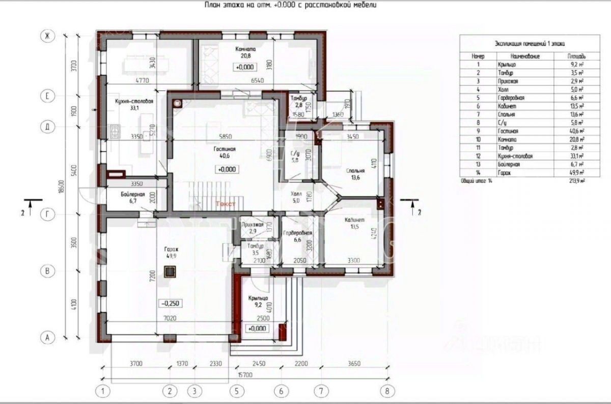 Планировка дома включает в себя: