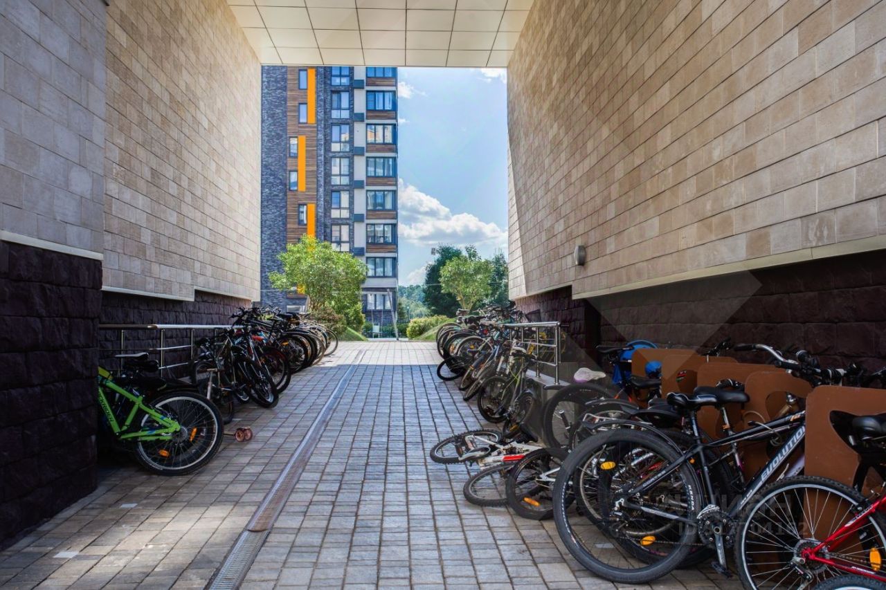 Во дворе дома есть охраняемая территория с детскими площадками, теннисным кортом и тренажёрами. На каждом этаже предусмотрены колясочные. В арке здания также есть места для парковки велосипедов.