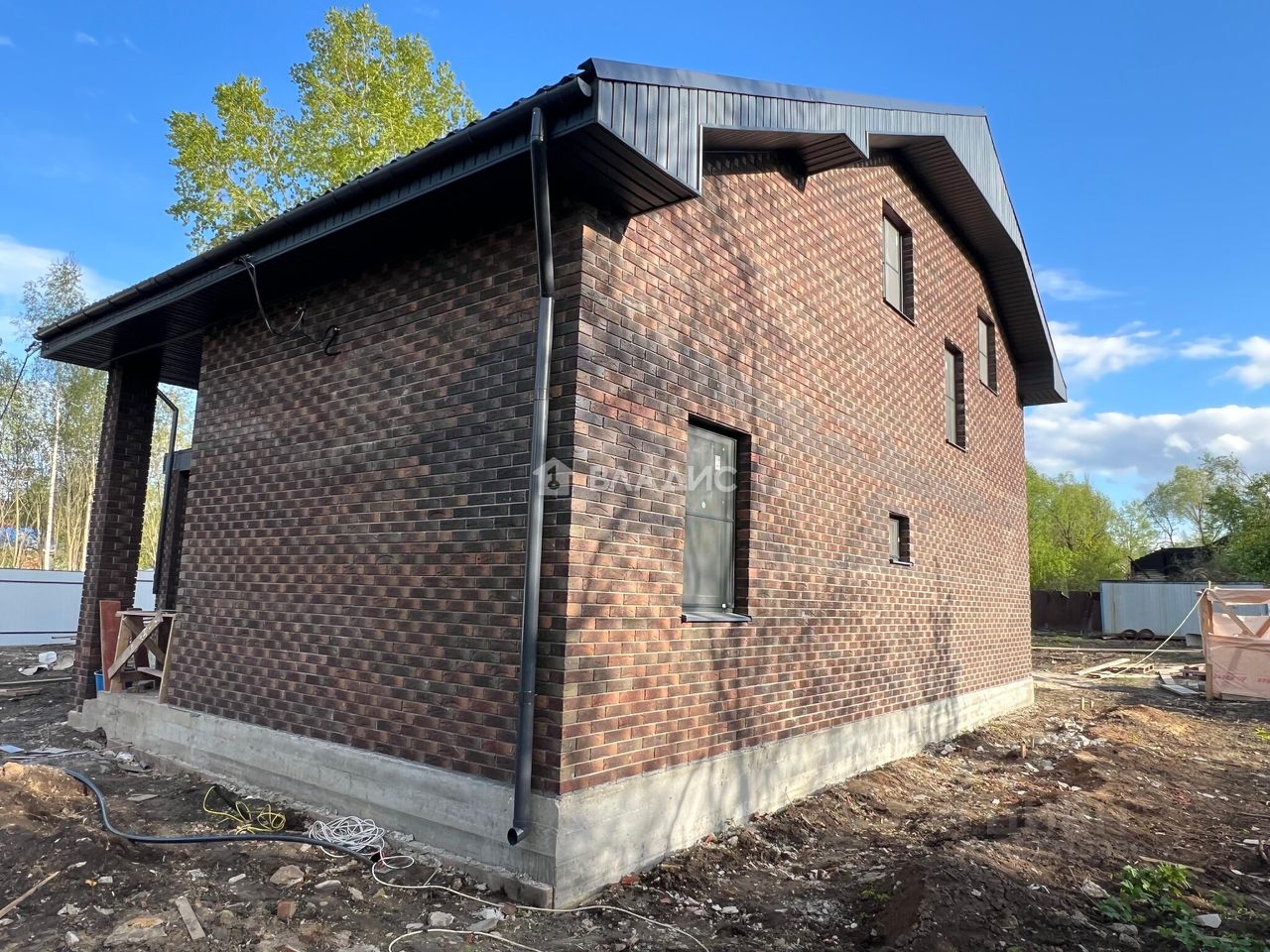 Фундамент: Армированный, бетонный столбчато-ленточный. Глубина свай 1,5 м . Высота ленты, общая 120 см по среднему уровню., ширина 43 см. Бетон заводской марка 300 Кровля: Металочерепица тип ''Монтерей'', цвет серый графит. Утепление минвата 200 мм Подбой свесов и фронтонов кровли дома: софит, цвет серый графит. Пол террасы: армированная стяжка, плиткой не комплектуется. Стены: Газобетонные блоки, производство ''PORITEP'' (250/300/625). Армирование металлической сеткой. Облицовочный кирпич, производитель компания Брайер, цвет кора дуб, этна. Утепление пенопластом толщина 50 мм. Швы пропенены. Перегородки: 1,2-й этаж блок 100 мм Окна: Двухкамерные стеклопакеты (3 стекла) , MELKE Пол первого этажа: Армированная стяжка Пол второго этажа: Бетонные плиты. Потолок натяжной с установленным контрольным люком. Все стены окрашены . Напольное покрытие: 2-й этаж ламинат , 1-й этаж плитка, в санузлах плитка на стенах и полах. В помещениях с уложенной плиткой выполнен электрический или водяной подогрев полов с теплорегуляторами, в зависимости от принятой схемы продавцом. Лестница: сосна Двери: межкомнатные двери цвет светло серый Электрика: Розетки, выключатели, выводы под светильники с патронами. Электрический щиток в сборе вводной, подведение к дому по земле бронированным проводом. Выполняется вся разводка по дому В каждой комнате: выключатель, 3 двойных розетки, вывод под люстру( одна точка с патроном за исключением кухня гостинная две точки) Водоснабжение: скважина с адаптером, сделано подведение холодной воды в дом в траншее на глубине 150 см, устанавливается насос , фильтр для грубой очистки воды, выполнена разводка воды во все сан узлы и кухню , для горячей воды устанавливается водонагреватель 80 л. Вода техническая. Септик: автономного типа на 5 человек. Сантехника: Унитаз, кран, тюльпан устанавливается в санузле первого этажа. Отопление: Электрокотел, радиаторы, расширительный бак. В системе залита тех. Вода. Выполнена разводка отопления по дому. В санузлах вместо батарей отопления могут устанавливаться электрические полотенцесушители, в зависимости от принятой схемы продавцом. Вентиляция: Санузлы и кухня, вент выход на кровле. Продуманная планировка: просторная кухня-гостиная, 4 жилые комнаты и 2 с/у.
