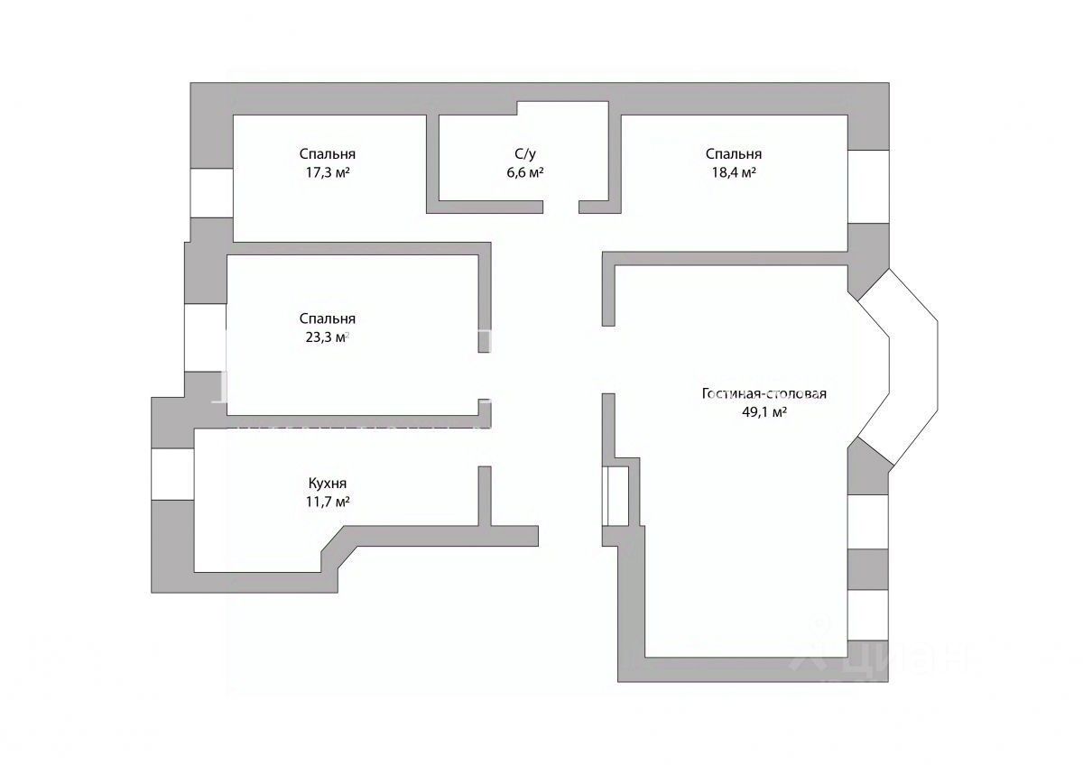 Планировочным решением предусмотрены: гостиная с зоной столовой, кухня, 3 спальни, санузел. Планировка позволяет разместить еще одну спальню и второй санузел. Высокие потолки 3.5 м.