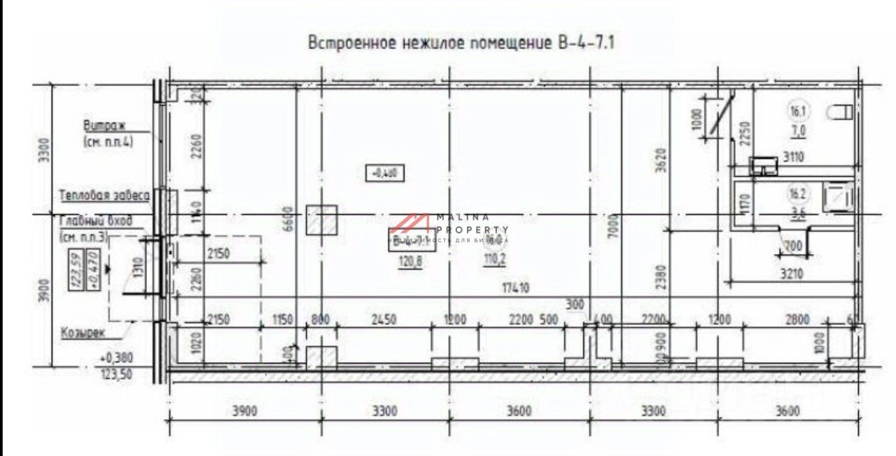 Торговое помещение общей площадью 119,7 м2 расположено 1 этаже жилого дома, открытая планировка, один вход, высота потолка 4 м, витринные окна по фасаду. Электрическая мощность 45 кВт. Парковка перед фасадом. Место для размещения рекламы.