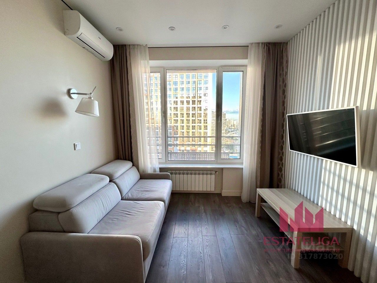 Функциональная планировка: - кухня-гостиная с барной стойкой, - мастер спальня, с гардеробом, - просторный коридор и основной санузел с ванной.