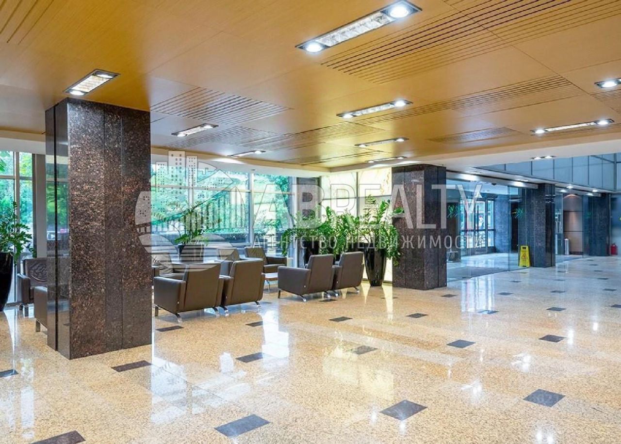 БЦ состоит из двух восьми этажных строений объединенных общей входной группой. Здание в стиле хай-тек. Панорамное остекление. Высокие потолки. Офис с видом на улицу.