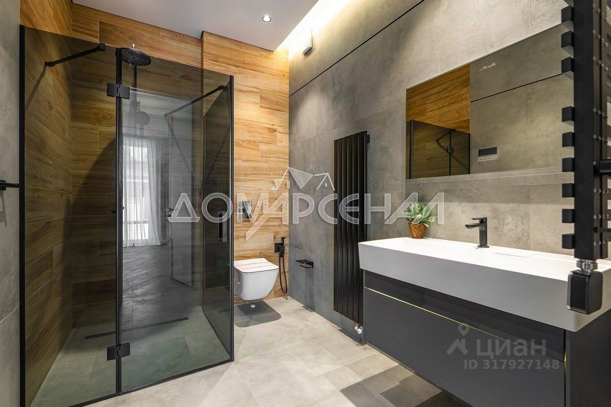 Код объекта: 0111203 Абсолютно новый дом в поселке премиум-класса Графские пруды • Оазис релакса и оздоровления прямо в вашем доме: просторна SPA-зона площадью более 100 метров, оснащенная по последнему слову техники • Удобная железобетонная лестница с отделкой из натурального мрамора и стеклянным ограждением, по дому разведен встраиваемый пылесос • Помещение для персонала с собственным с/у и входом с участка • Идеально благоустроенный участок 15 соток для комфортной жизни • Мастер-блок (более 70 кв.м) для комфорта и эстетического удовольствия: спальня и гардеробная, укомплектованные мебелью премиум-класса, зонирование тонированной стеклянной перегородкой, просторная ванная комната с уникальными деталями • Современная система приточно-вытяжной вентиляции с подогревом обеспечивает комфортную температуру и оптимальную влажность в спа Планировка дома: 1 этаж: элегантный холл, наполненный воздухом и светом. Удобная гардеробная со встроенной мебелью - хранение вещей с максимальным комфортом. Сердце дома - кухня-столовая с панорамным остеклением и выходом на летнюю террасу - идеальное место для семейных обедов и приема гостей на свежем воздухе. В уютной гостиной расположен дровяной камин, создающий атмосферу тепла и уюта в холодные зимние вечера. Для вашего удобства на этаже расположены санузел, бойлерная и кладовая. Теплый гараж на 2 автомобиля. СПА-зона, оснащенная по последнему слову техники. Бассейн с чашей 3х8 м (глубина до 1.8 м) и противотоком отделан натуральной мозаикой. Сауна с панно из гималайской соли. И, конечно же, выход на участок. Помещение для персонала с собственным с/у и входом с участка 2 этаж: мастер-блок - пространство для отдыха и восстановления сил: спальня, зона гардероба, большая ванная комната. На этаже еще 2 спальни (обе с санузлами и одна дополнительно с гардеробной комнатой), отличаются комфортом и функциональностью 3 этаж: мансардный этаж более 100 кв.м. На нем располагается лофт-студия с потолками около 4 метров - можно сделать тренажерный зал, кинозал, игровую зону или вторую гостиную. Также на этом этаже спальня, санузел и функциональная постирочная с душевой Участок: Участок ровной формы, на участке густой зеленый газон, вымощены дорожки, посажены туи. И простор для реализации именно вашего ландшафтного проекта Открытая парковка на 4 автомобиля с автоматическими воротами Инфраструктура: • КП расположен в лесопарковой охранной зоне Новой Москвы и находится в экологически чистой ее части, полностью жилой • В посёлке детские и спортивные площадки, прогулочные зоны, оборудованный пруд • На территории КП - частная школа NeШкола (1-11 класс) с разнообразными дополнительными занятиями для детей, а также ресторан и пилатес-студия • В 5-7 мин. школы, магазины, поликлиника • В 15-20 минутах расположены спортивные и образовательные учреждения: конноспортивный клуб Иппо, теннисная Академия, Теплеево резорт, April (спортивный и теннисный клуб, профессиональный каток)