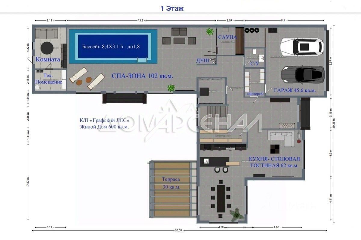 Общая площадь600 м2