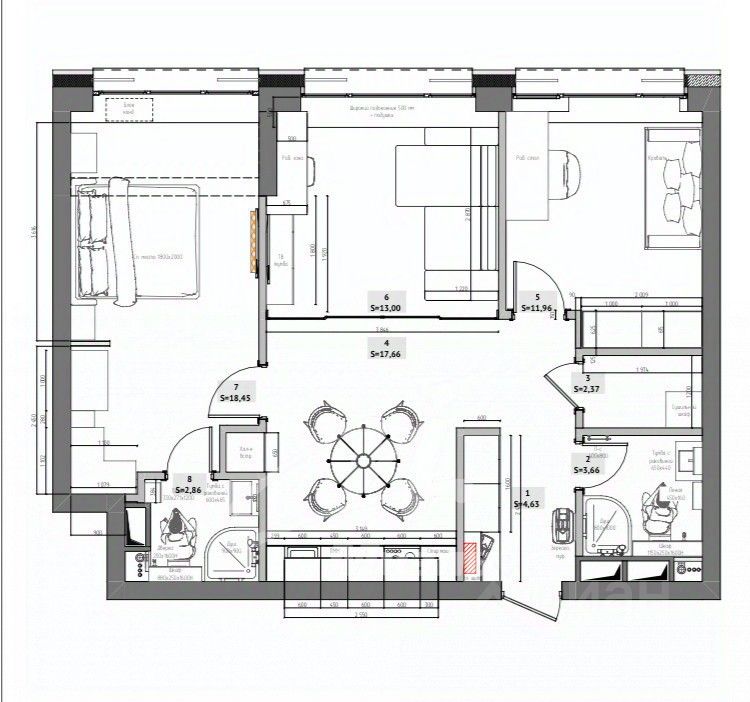 Планировка: - Просторная кухня-гостиная 20 кв. м — идеальна для семейных мероприятий. - Две изолированные спальни с возможностью зонирования. - Два совмещенных санузла для удобства жильцов и гостей. - Квартира без отделки — реализуйте любой дизайн-проект.