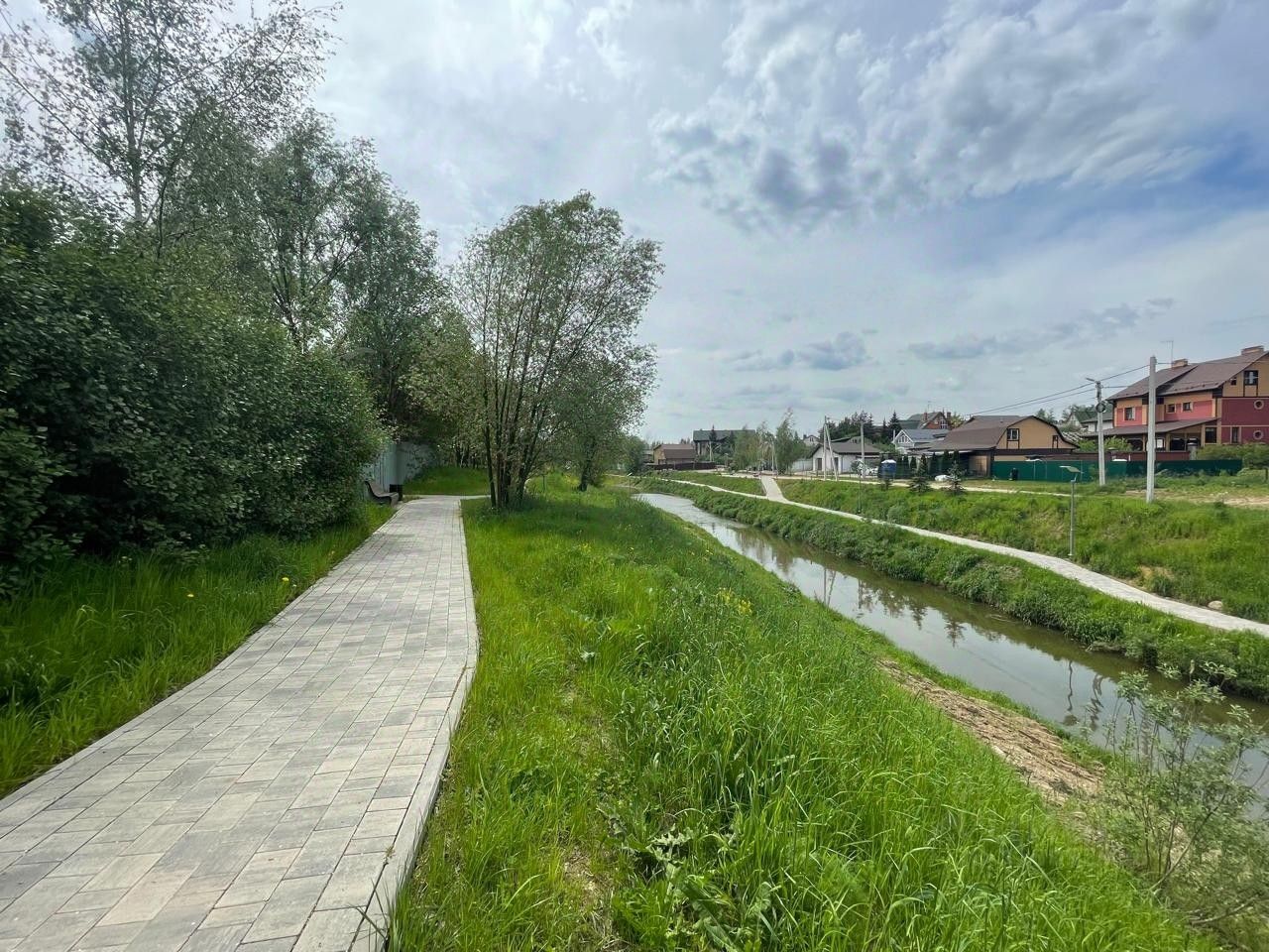 На территории поселка для жителей построена прогулочная зона вдоль реки.