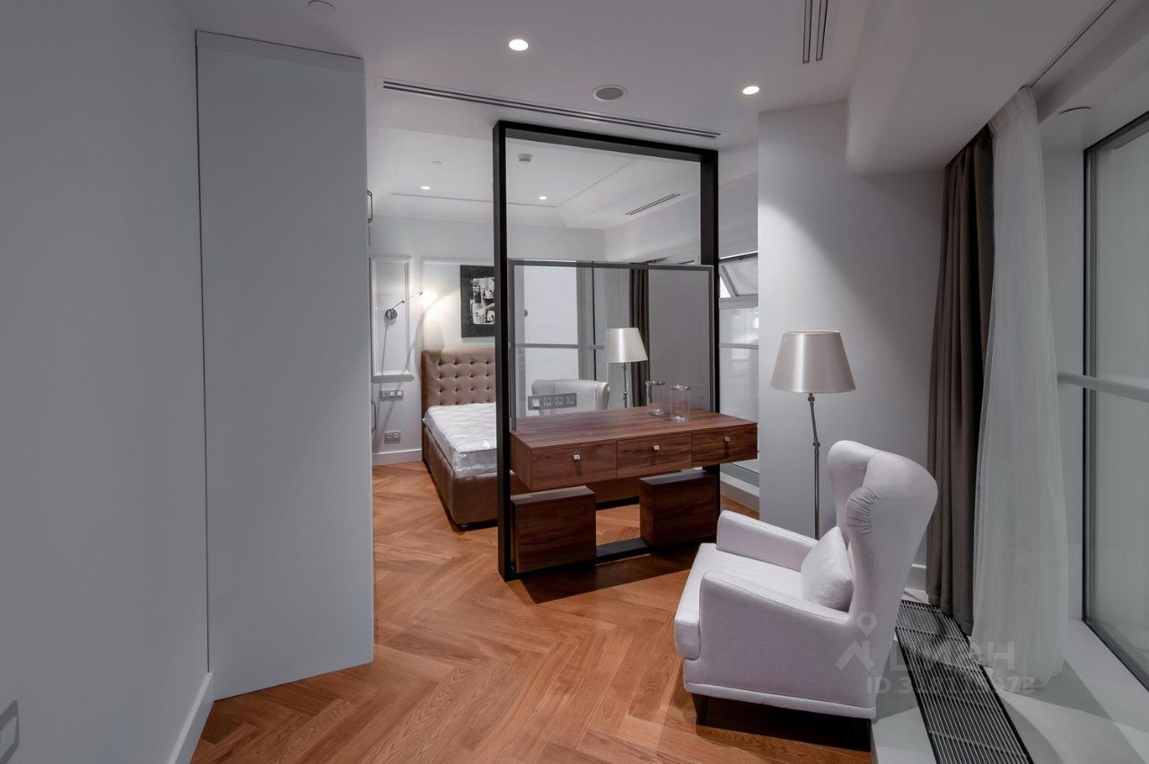 Функциональные апартаменты с современной отделкой в стиле неоклассика, панорамным остеклением, полностью укомплектованы бытовой техникой и мебелью.