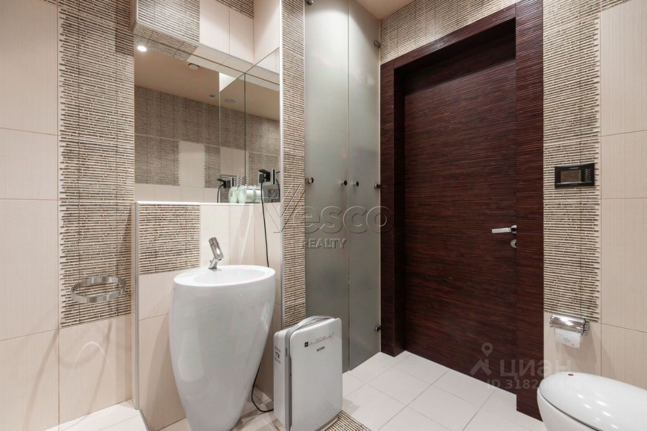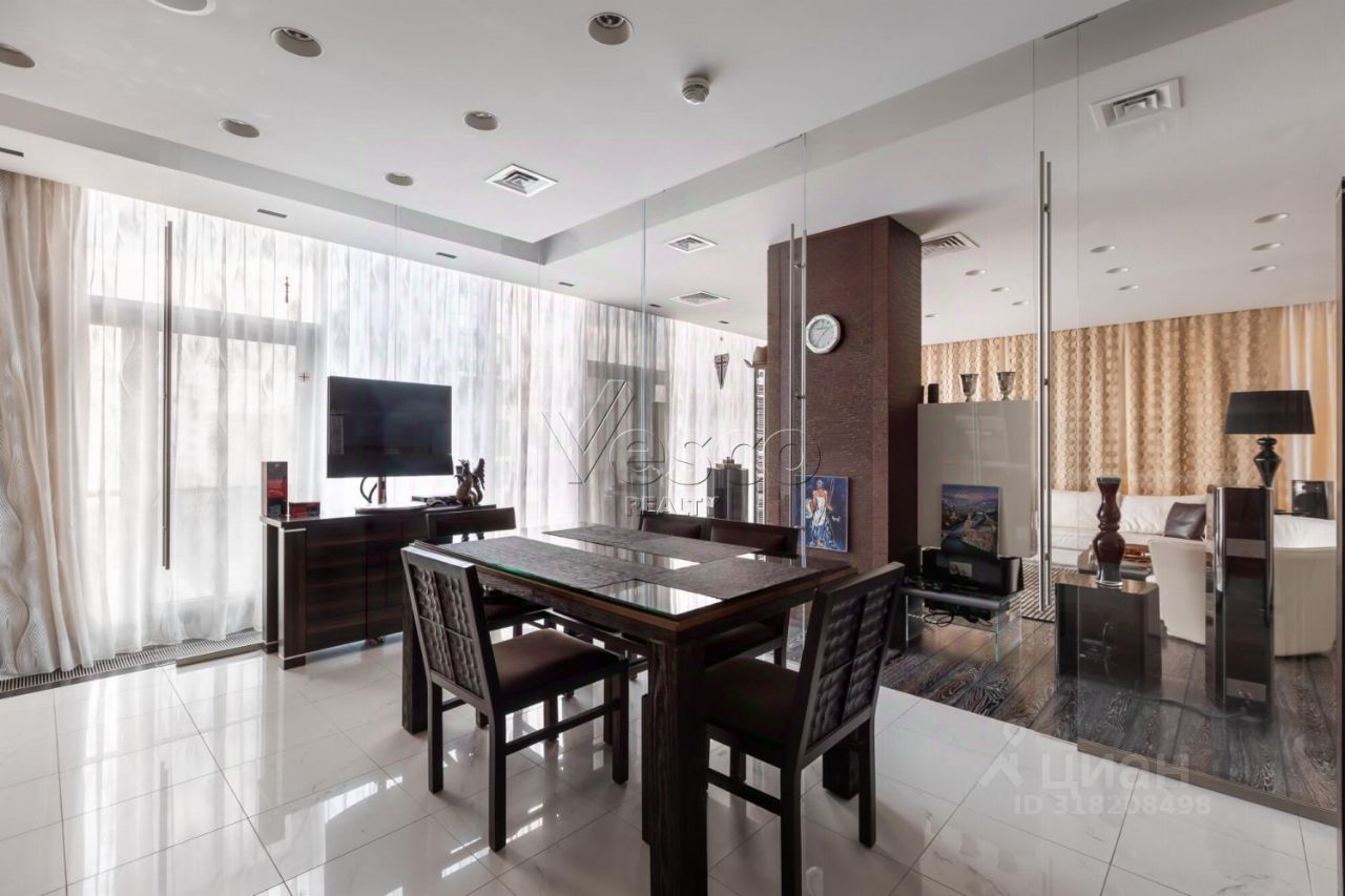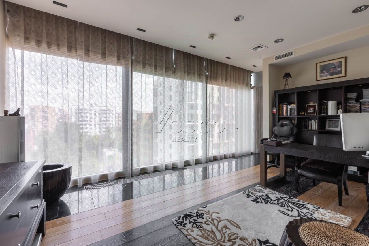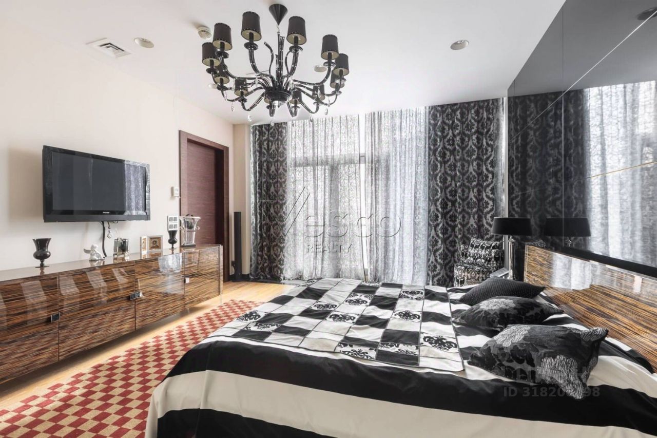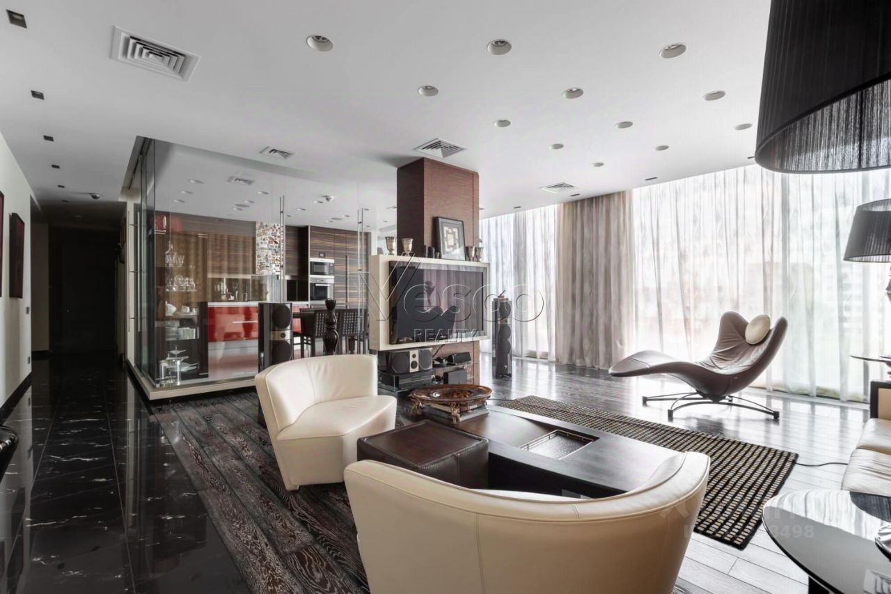 Лот 168915. ЖК ''Панорама'' - Трехкомнатная квартира общей площадью 178 кв.м с дизайнерским ремонтом в жилом комплексе ''Панорама''. Интерьер квартиры выполнен в современном стиле с применением качественных дорогостоящих материалов. Панорамные окна в пол, высотой более 3 метров, открывают красивые виды на исторический центр Москвы. Квартира полностью укомплектована мебелью, оборудована современной бытовой техникой от ведущих мировых производителей и готова к проживанию. Функциональная планировка включает в себя кухню-гостиную, мастер-спальня с ванной комнатой и гардеробной, кабинет (вторая спальня) с ванной комнатой, гардеробные, гостевой с/у с душем. Одно машиноместо в подземном паркинге входит в стоимость.