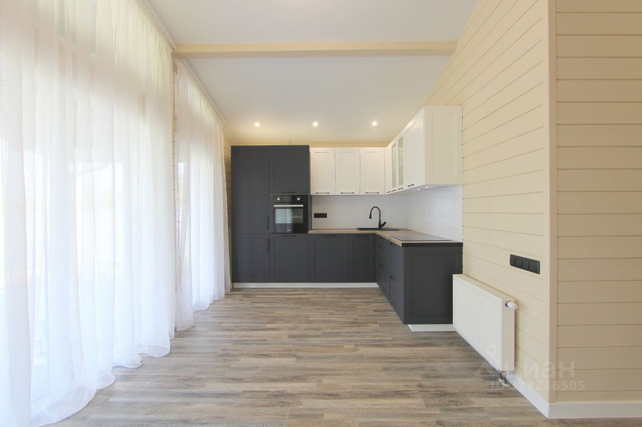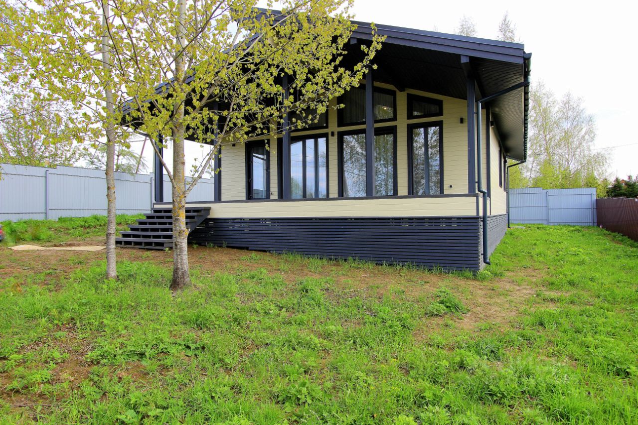 Продается новый, качественный, современный и очень теплый дом 117,4 кв.м. с участком 8,2сотки в 65км от МКАД по Новорижскому шоссе. Дом действительно теплый: за предыдущую зиму стоимость электричества на отопление 2-3 тыс.руб. в месяц. Строился по индивидуальному проекту. Размер дома 9*14 м. Фундамент - железобетонные сваи (200*200*4000), перекрытия пола - структурно-изолированные панели толщиной 224 мм, по всему дому выполнена бетонная стяжка 90 мм (толщина всех слоев перекрытия пола 310 мм). Разведены теплые полы по всему периметру дома, на полу кварц винил, матовые натяжные потолки. При строительстве каркаса стен и крыши использовалась сухая строганная доска с противопожарной фаской: для стен 145*45мм, для крыши 195*45мм. Стены и крыша утеплены базальтовой ватой Knauf (на стенах - 150 мм, на крыше - 200 мм), пароизоляция и супердиффузионная 3-х слойная мембрана FarAcs. Крыша - мягкая черепица со свесами 90 см. Окна пластиковые Brusbox с ламинированным профилем. Наружные стены имитация бруса с ровной заводской окраской, по периметру дома освещение. На веранде использовалась террасная доска из древесно-полимерного композита (ДПК). При строительстве дома на материалах не экономили, использовали только качественные. Есть фото со всеми этапами строительства.