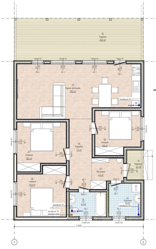 Продается новый, качественный, современный и очень теплый дом 117,4 кв.м. с участком 8,2сотки в 65км от МКАД по Новорижскому шоссе. Дом действительно теплый: за предыдущую зиму стоимость электричества на отопление 2-3 тыс.руб. в месяц. Строился по индивидуальному проекту. Размер дома 9*14 м. Фундамент - железобетонные сваи (200*200*4000), перекрытия пола - структурно-изолированные панели толщиной 224 мм, по всему дому выполнена бетонная стяжка 90 мм (толщина всех слоев перекрытия пола 310 мм). Разведены теплые полы по всему периметру дома, на полу кварц винил, матовые натяжные потолки. При строительстве каркаса стен и крыши использовалась сухая строганная доска с противопожарной фаской: для стен 145*45мм, для крыши 195*45мм.