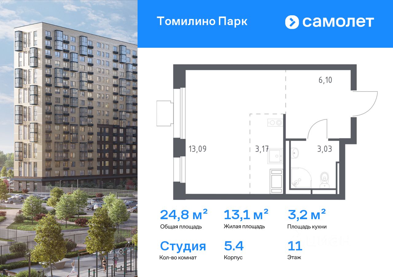 Строим кварталы для жизни с заботой о будущем. Предлагается квартира студия комфорт-класса 24,8 кв.м в корпусе 5.4 на 11 этаже, в ЖК ''Томилино Парк'' Квартира с предчистовой отделкой. Доступность дополнительных опций уточняйте у застройщика.