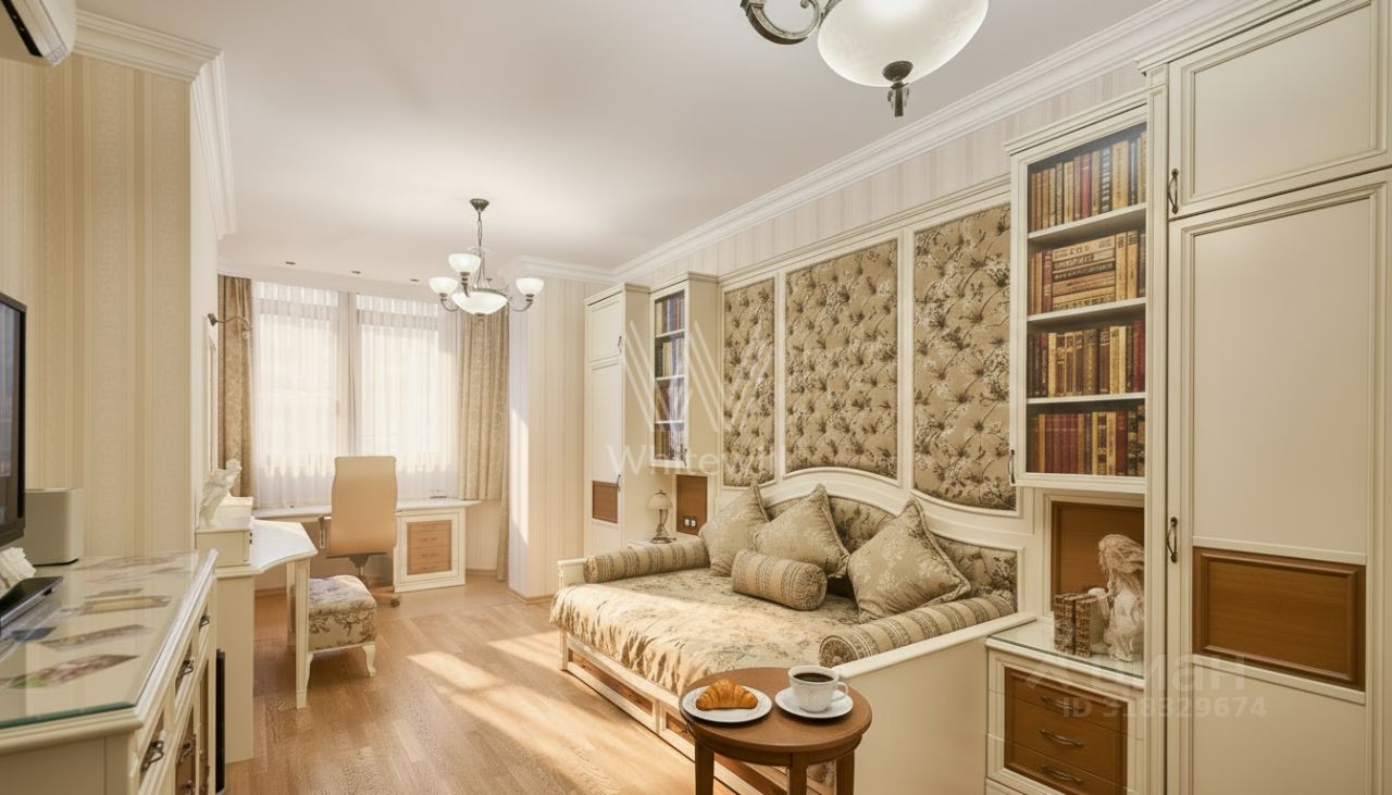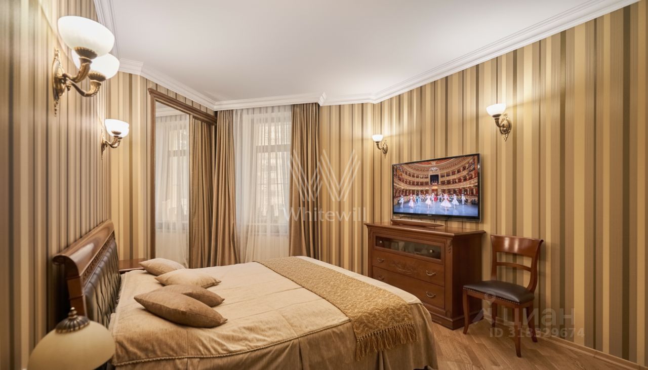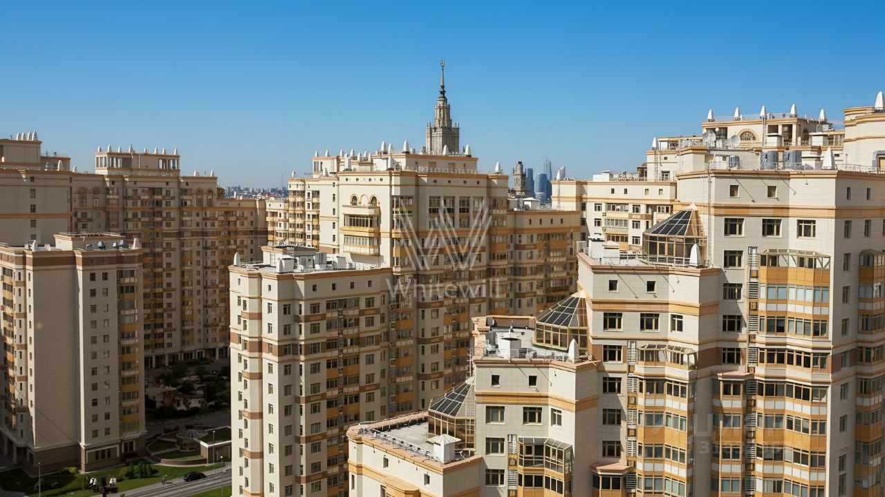 Квартира с тремя спальнями в комплексе бизнес-класса ''Доминион'' в Раменках. Квартира общей площадью сто шестьдесят два м² расположена на третьем этаже в первом корпусе. Выполнена дизайнерская отделка с использованием премиальных материалов. Потолки украшают, покрытые позолотой, испанские люстры из оникса. Квартира полностью укомплектована мебелью из Италии и бытовой техникой Miele.