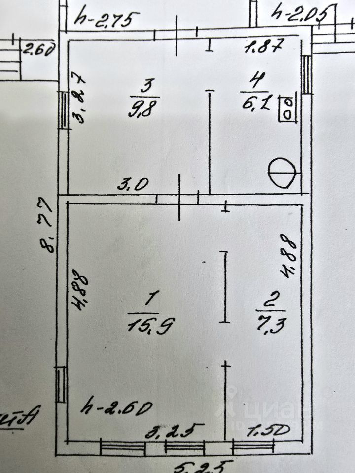 Дом 1 этажный. Общая площадь дома 38.4 кв.м. В доме электричество, центральное газовое отопление. В доме: прихожая, гостиная зона с кухней, жилая комната. На участке колодец, санузел.