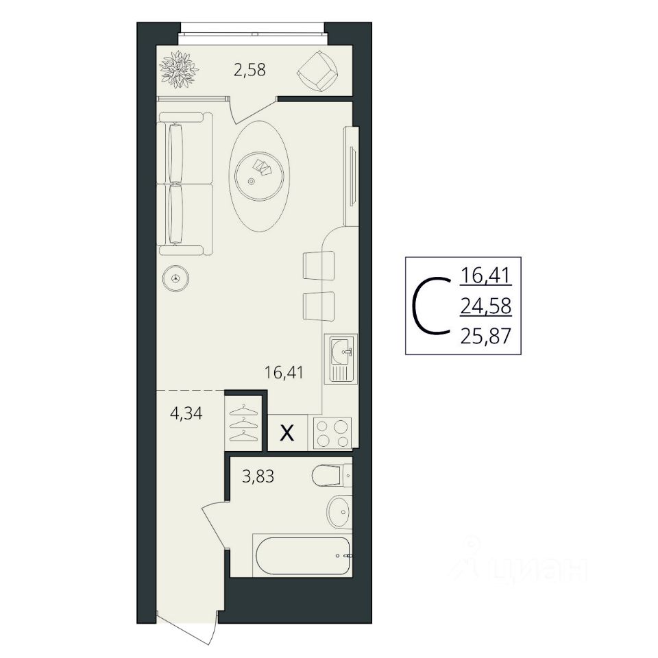 Общая площадь25,87 м2