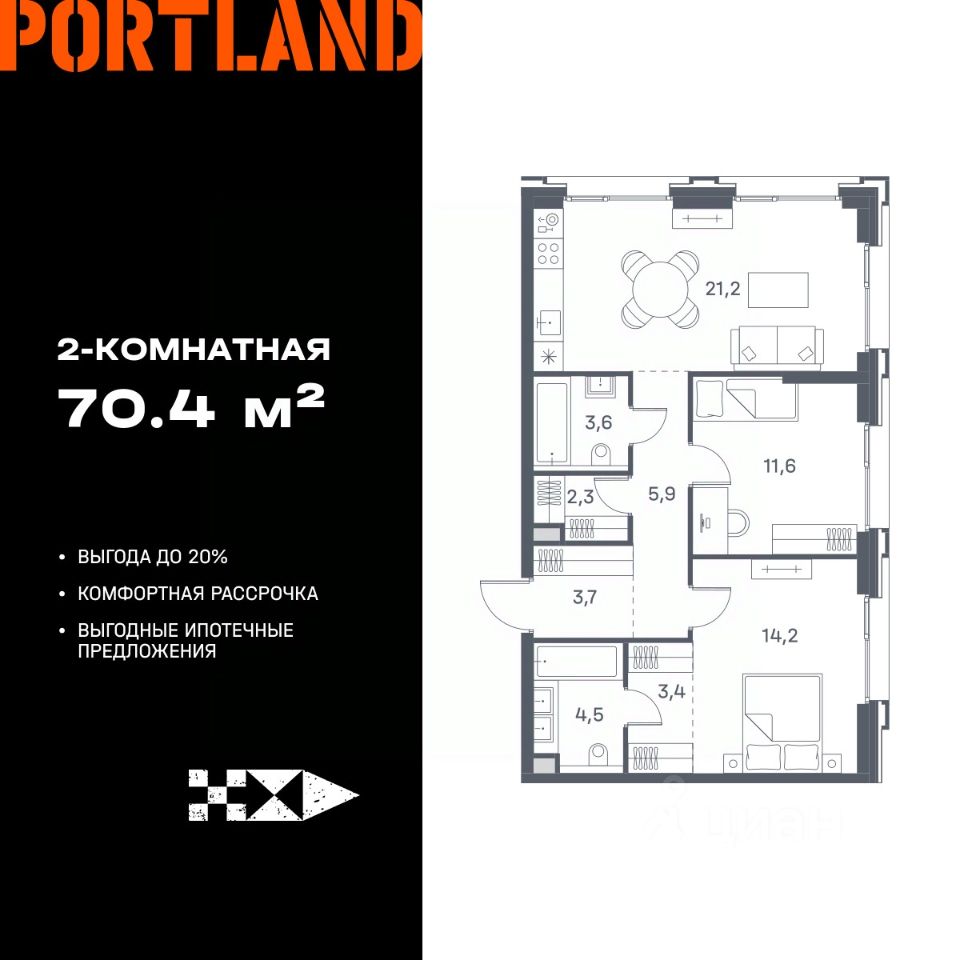 Продаётся 2-к. квартира, 12 этаж в жилом комплексе бизнес-класса Portland от девелопера FORMA. ЖК расположен на берегу Москвы-реки в северной части района Печатники в акватории Южного речного порта. Основные преимущества проекта: • Самая протяженная береговая линия реки в Москве 13 км. • Вид на реку в сторону запада панорамные окна на самое широкое водное пространство Москва-реки (900 м) и на закат. • 95% квартир с видом на воду. • К Portland не примыкает крупных автомагистралей - отсутствие фонового шума дорог. • В перспективе ближайших 11 лет на территории района запланировано грандиозное преобразование и комплексное развитие. • Собственная набережная длиной 412 м., которая после завершения строительства сомкнется с эко-парком Печатники. • Прямой выход к воде и отсутствие проезжей части между Portland и береговой линией. • Инфраструктурное разнообразие: супермаркеты, крупные торговые центры, рестораны, кафе, фитнес-клубы, бьюти-салоны, компании сферы услуг и многое другое. • Собственная школа на 300 мест и детский сад на 275 мест. • Паркинг на 650 м/м • Транспортная вседоступность: метро, авто, велосипед, речной трамвай, канатная дорога • 15 мин. пешком до м. Печатники, 15 мин. на авто до ТТК, 20 минут на авто до Садового кольца