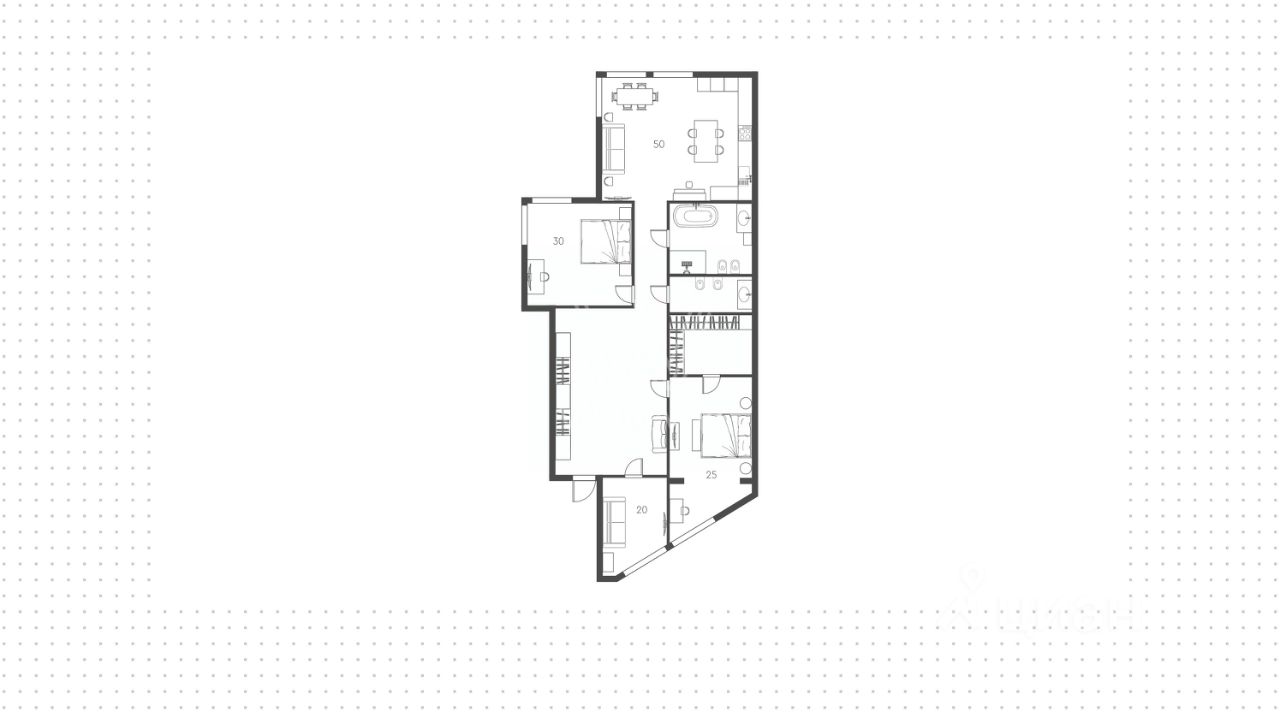 Квартира с тремя спальнями общей площадью 170 м² в жилом комплексе ''Смоленская Застава''. Жилой комплекс расположен в престижном районе Хамовники.
