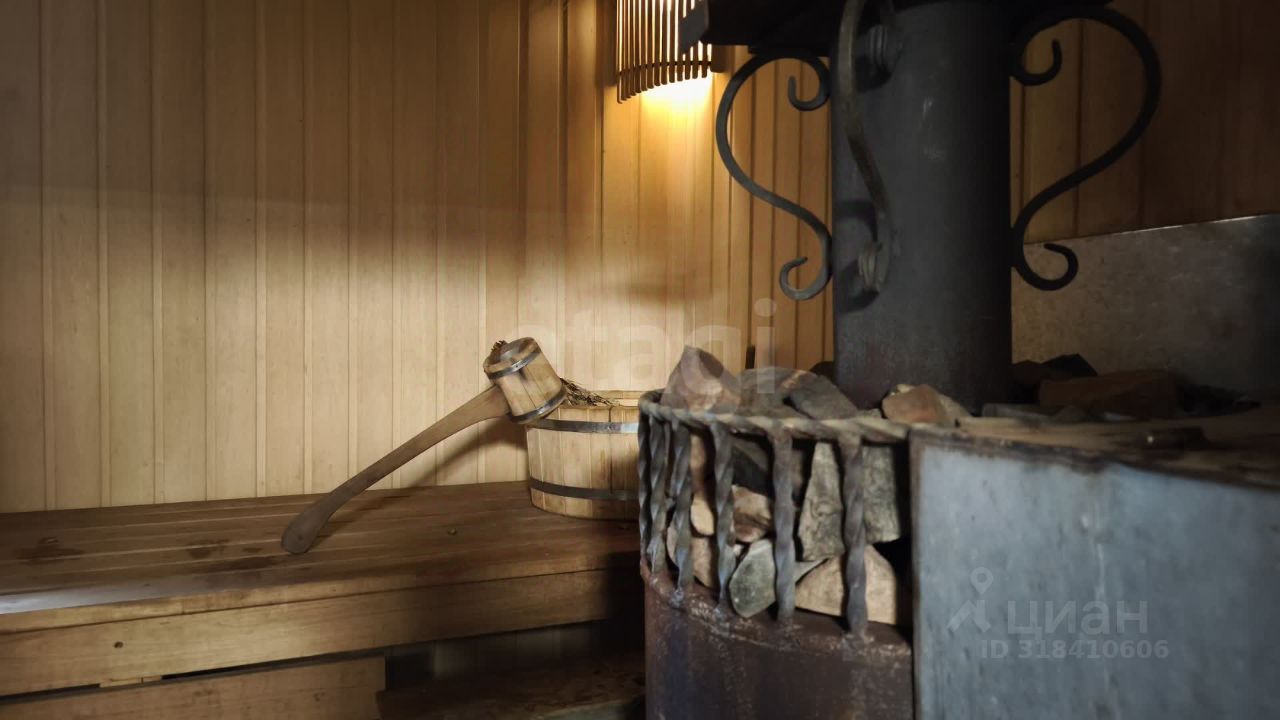 Отдельного внимания заслуживает прекрасная баня площадью 40,5 квадратных метров, выполненная из натурального бревна. Здесь вам будут предоставлены условия для настоящего русского отдыха круглый год благодаря теплу электрических полов и удобствам в виде теплой купели, кухни с необходимой быт