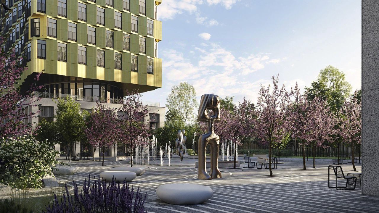 Главное о доме. MOD — квартал из трёх башен и двух камерных домов с большими окнами и светлыми лобби. На стилобате устроили дворы без машин и прогулочные бульвары, а на крышах — террасы для летних пауз. Входные группы — натуральный камень, мягкий свет, стойка ресепшн и места для колясок. Внутри работает городская галерея: супермаркет, ресторан и повседневные сервисы на первых этажах. Для жителей открыли клубные пространства и коворкинг, в составе проекта запланировали образовательный центр и детский сад. Под землёй — многоуровневый паркинг с лифтовым доступом к корпусам.