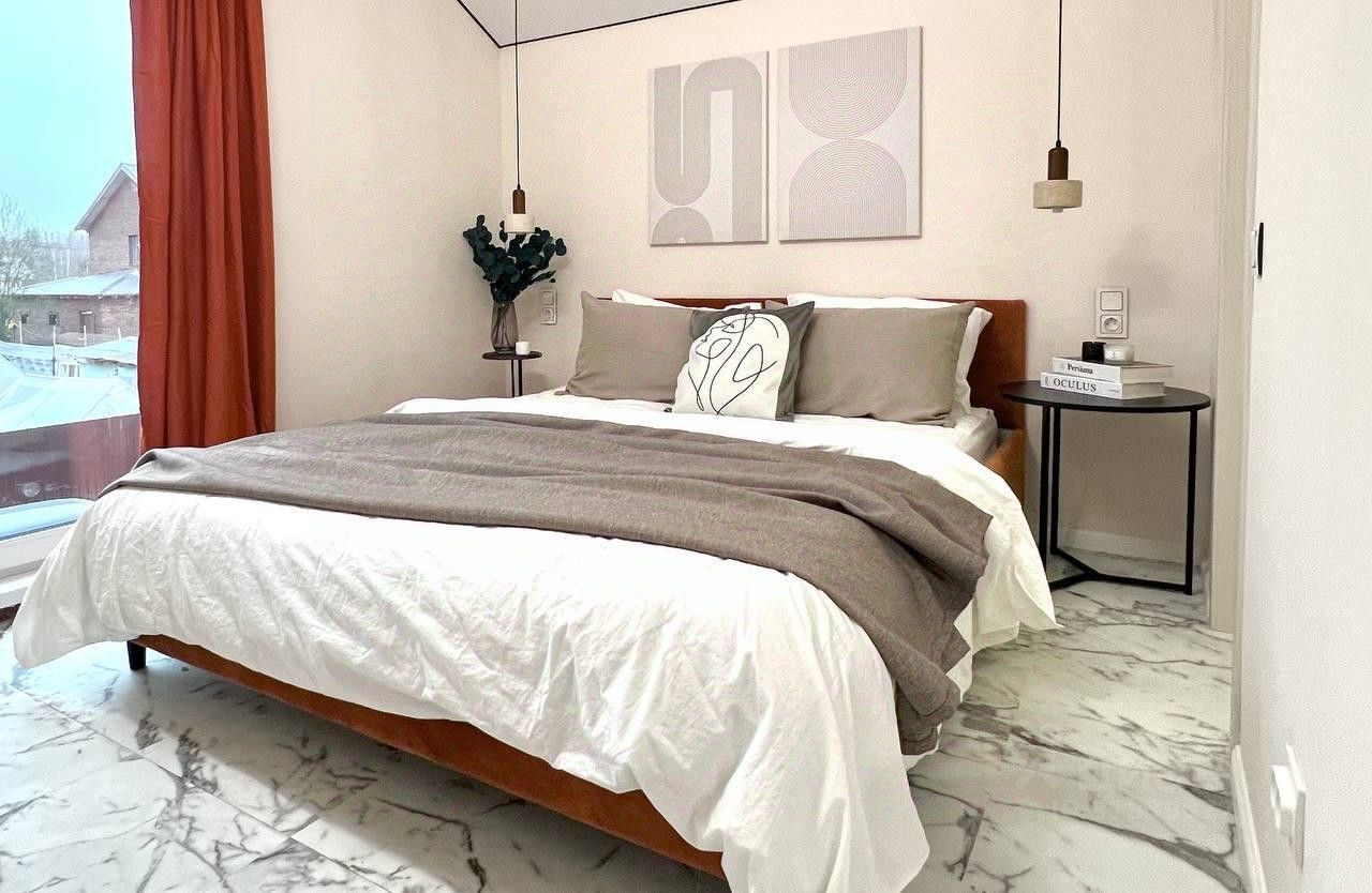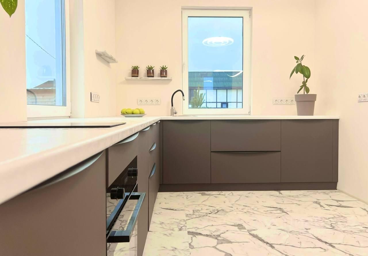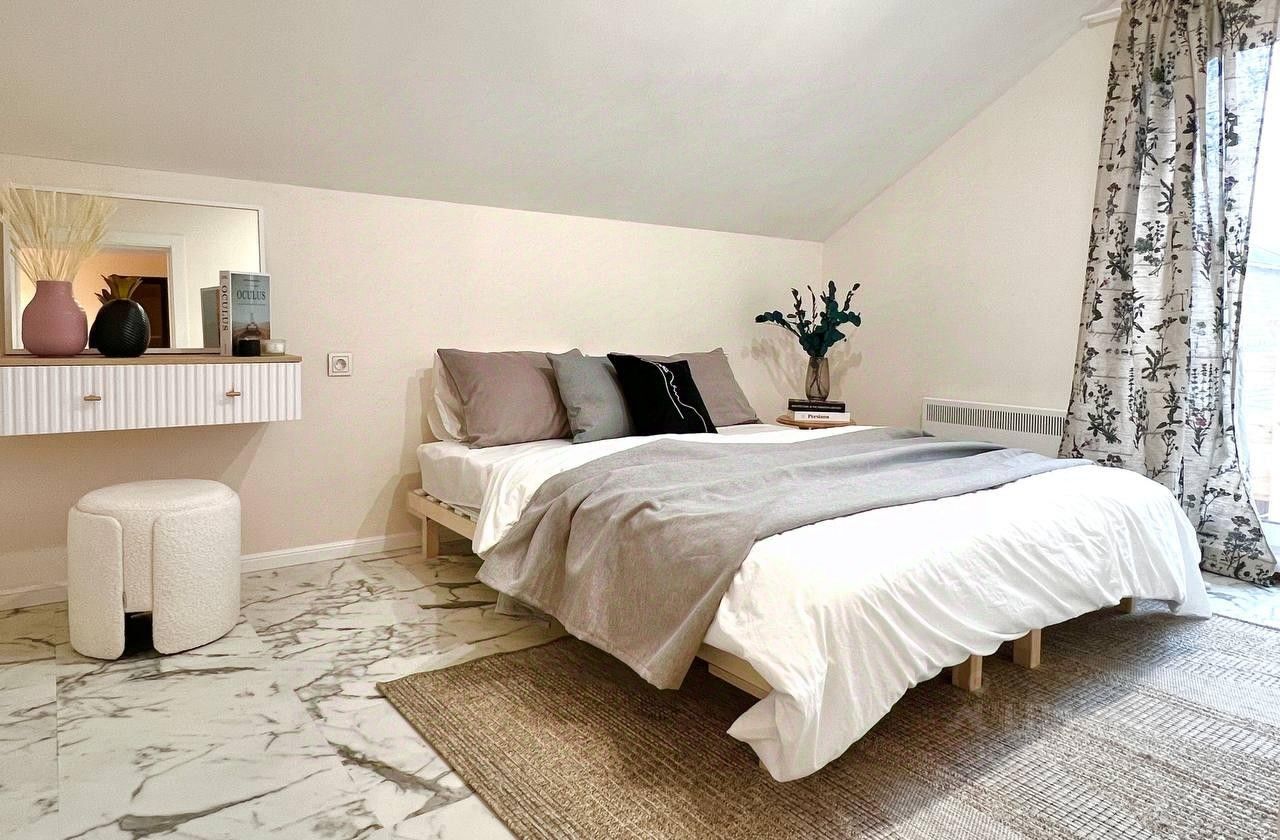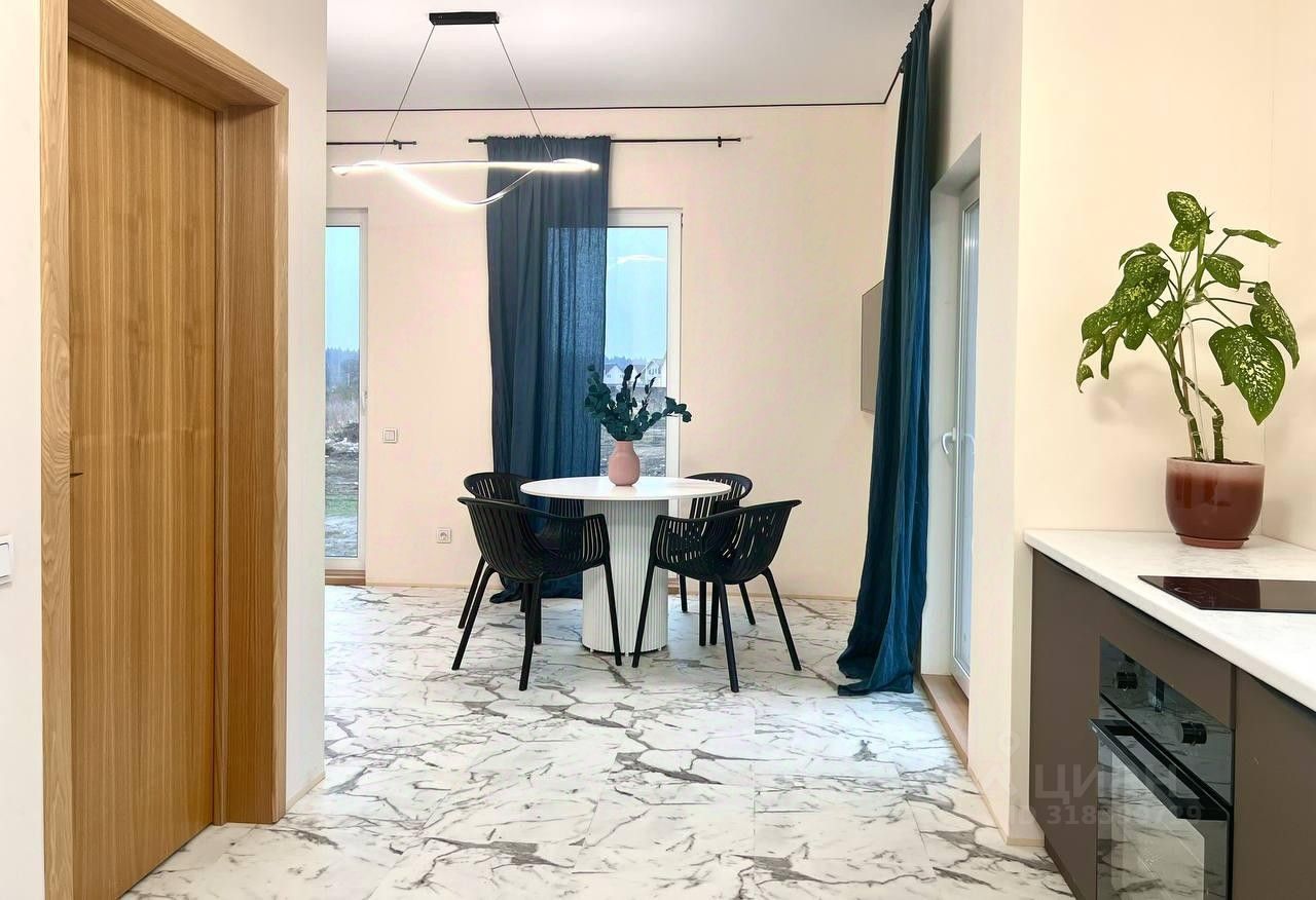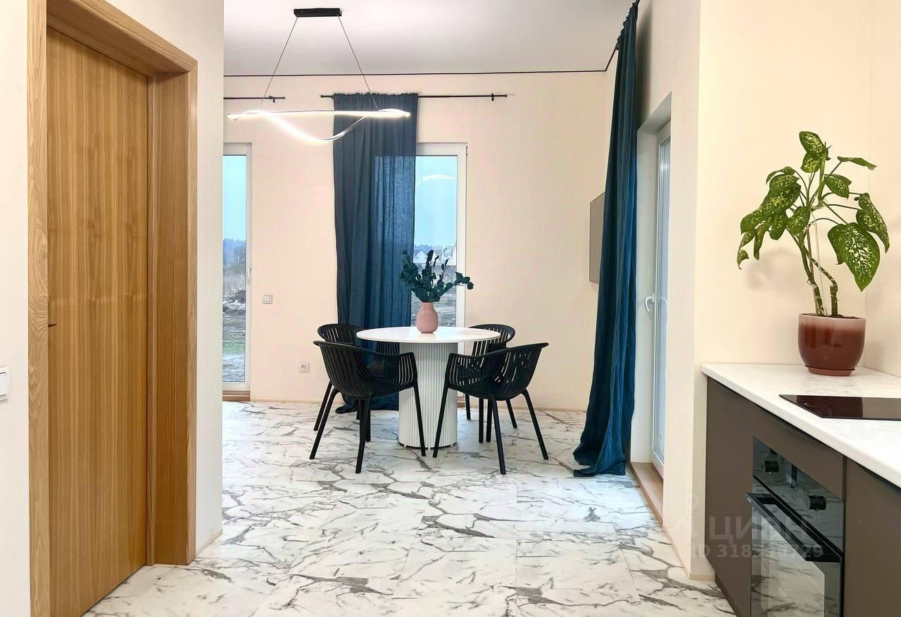 Продаётся дом 105 м² с эксклюзивным ремонтом всего в 40 км от МКАД в экологически благоприятном направлении: ЦКАД, Истринский р-н, посёлок городского типа грогородок. Идеально подходит для круглогодичного проживания или загородного отдыха. Завершено строительство в 2024 г., 2 этажа, угловой участок правильной формы 6,7 соток. Продуманная функциональная планировка, использованы качественные материалы, полностью укомплектован мебелью и техникой. На 1-м этаже: большая гостиная с французскими окнами, кухня, прихожая, санузел, техническая комната. При необходимости возможно возвести перегородку и создать дополнительно спальню. На 2-м этаже: 3 спальни, гардеробная, санузел. За счет множества широкоформатных окон, выбранных материалов и цветов всегда светло и уютно.