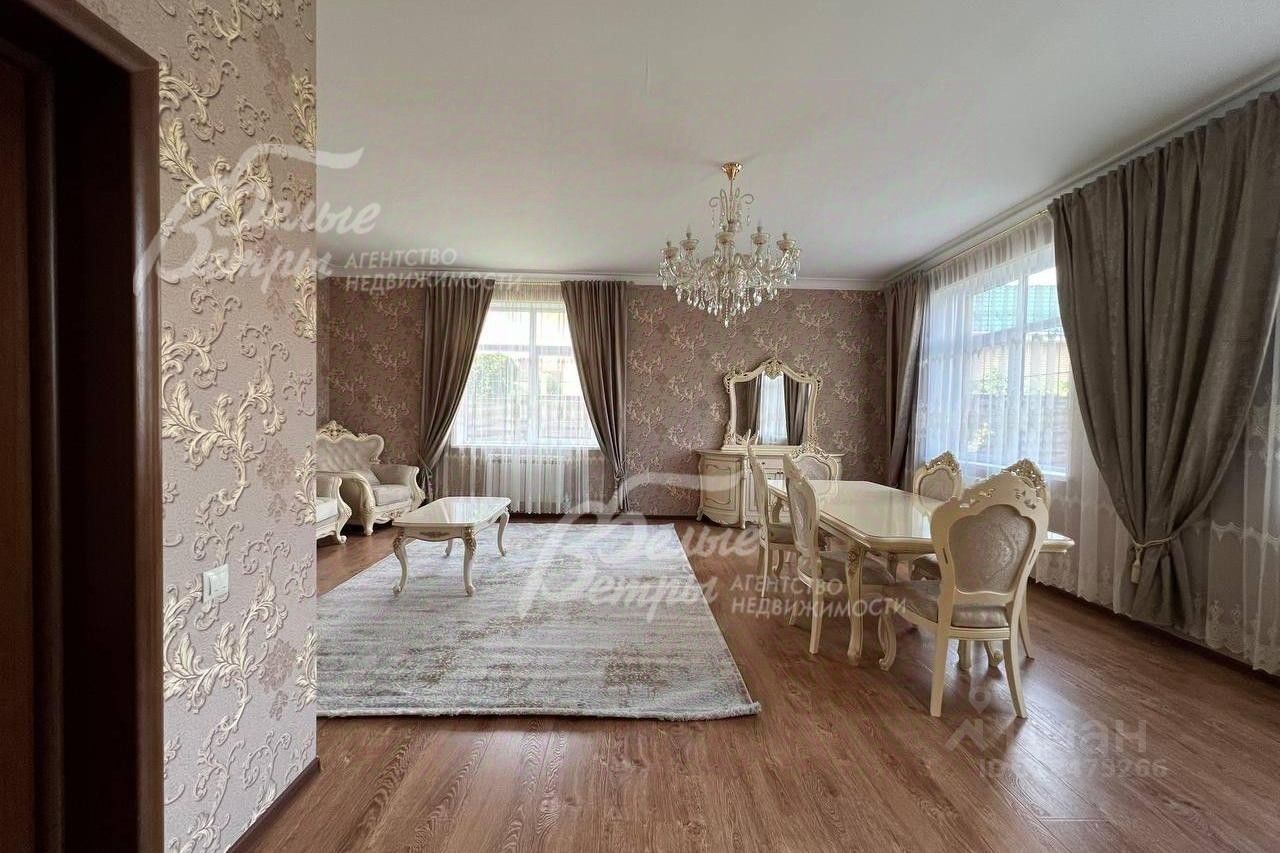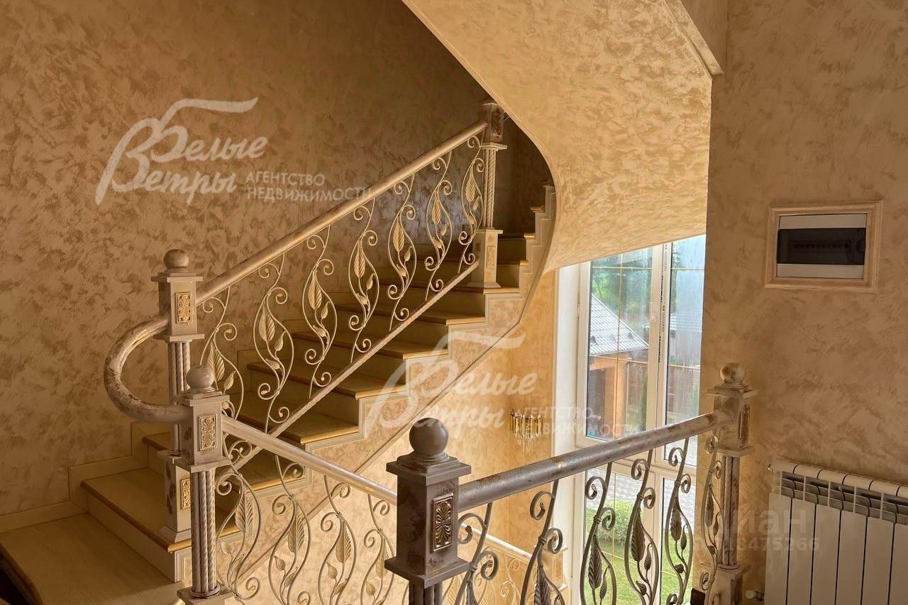Описание внутренней отделки: отделка в классическом стиле: в общих помещениях декоративная штукатурка (''песок''), в спальнях обои. В санузлах импортная плитка от пола до потолка. Полы: ламинат в гостиной и спальнях, прихожая, зона кухни и столовой - керамогранит. Потолки штукатуренные, покрашенные. Красивая лестница с кованым ограждением..