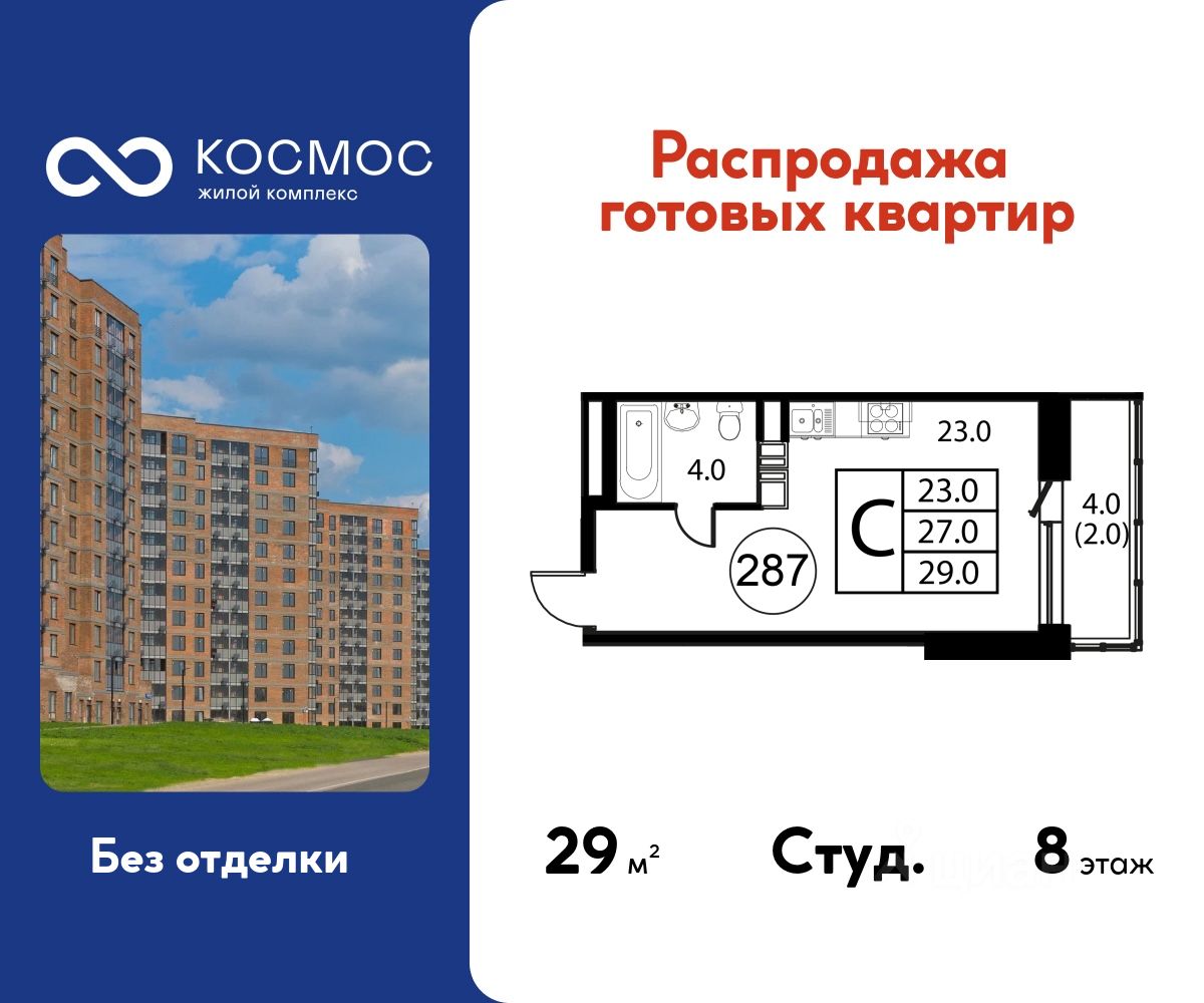 Продаётся студия в сданном доме (Корпус 7), срок сдачи: 2-кв. 2025, общей площадью 29.00 кв.м., на 8 этаже.