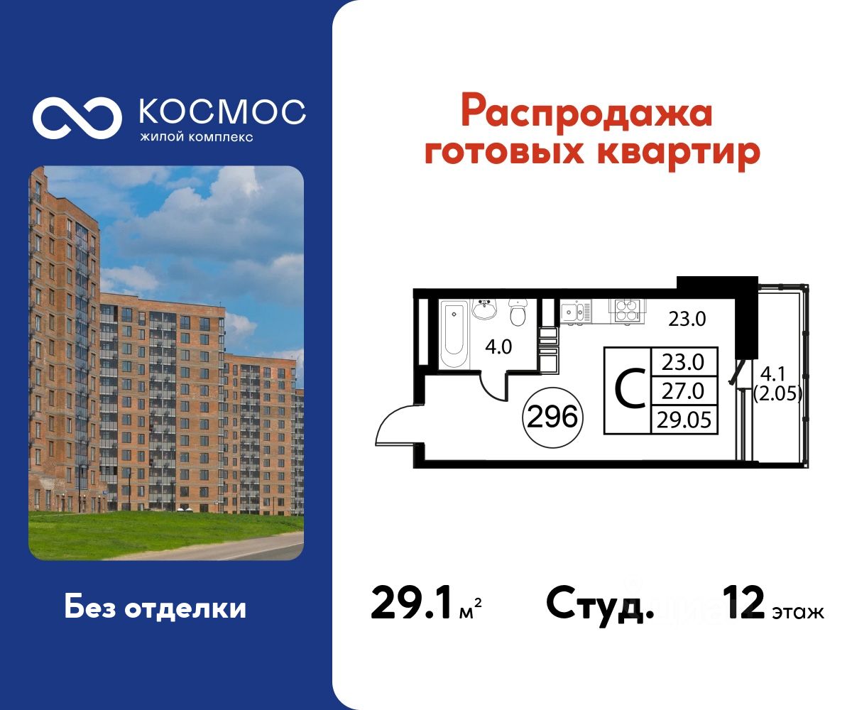 Продаётся студия в сданном доме (Корпус 7), срок сдачи: 2-кв. 2025, общей площадью 29.05 кв.м., на 12 этаже.