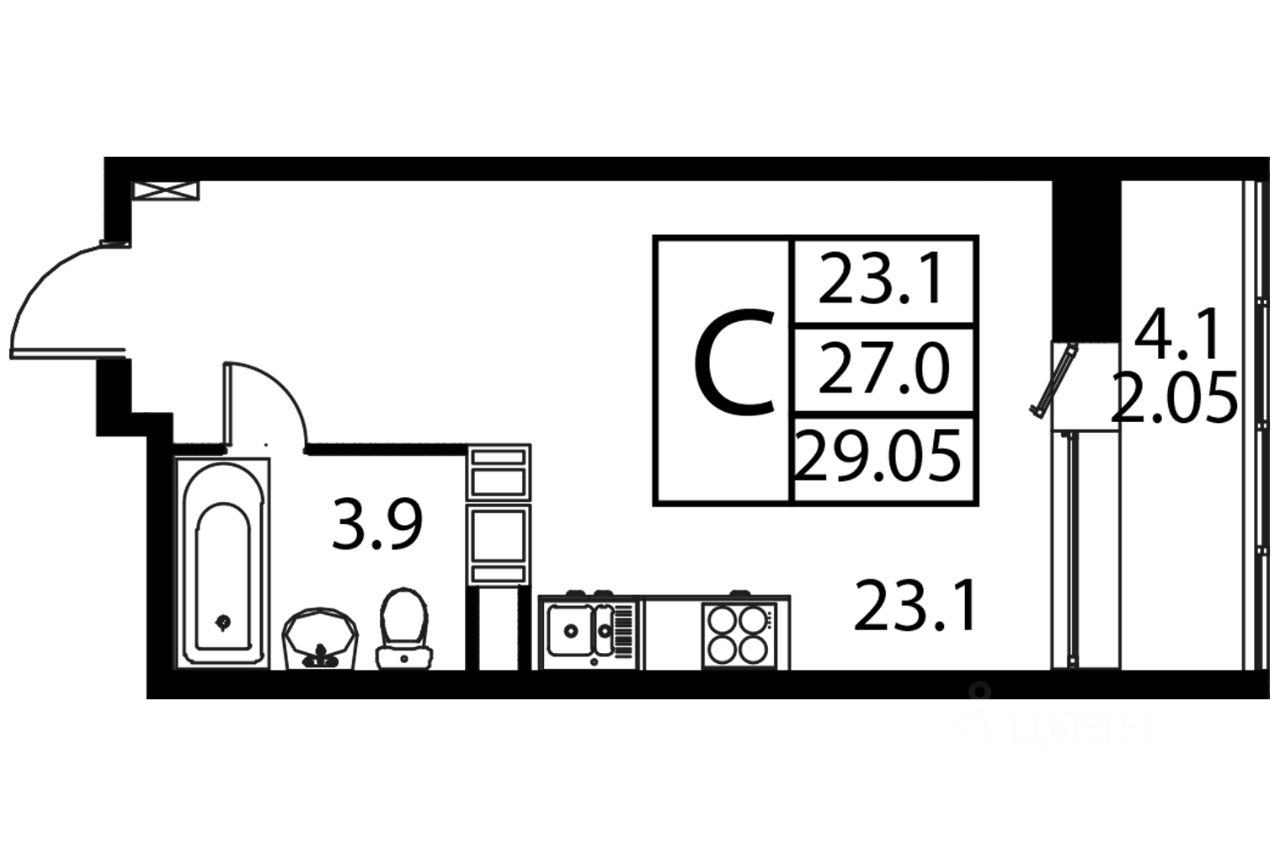 Общая площадь29,05 м2