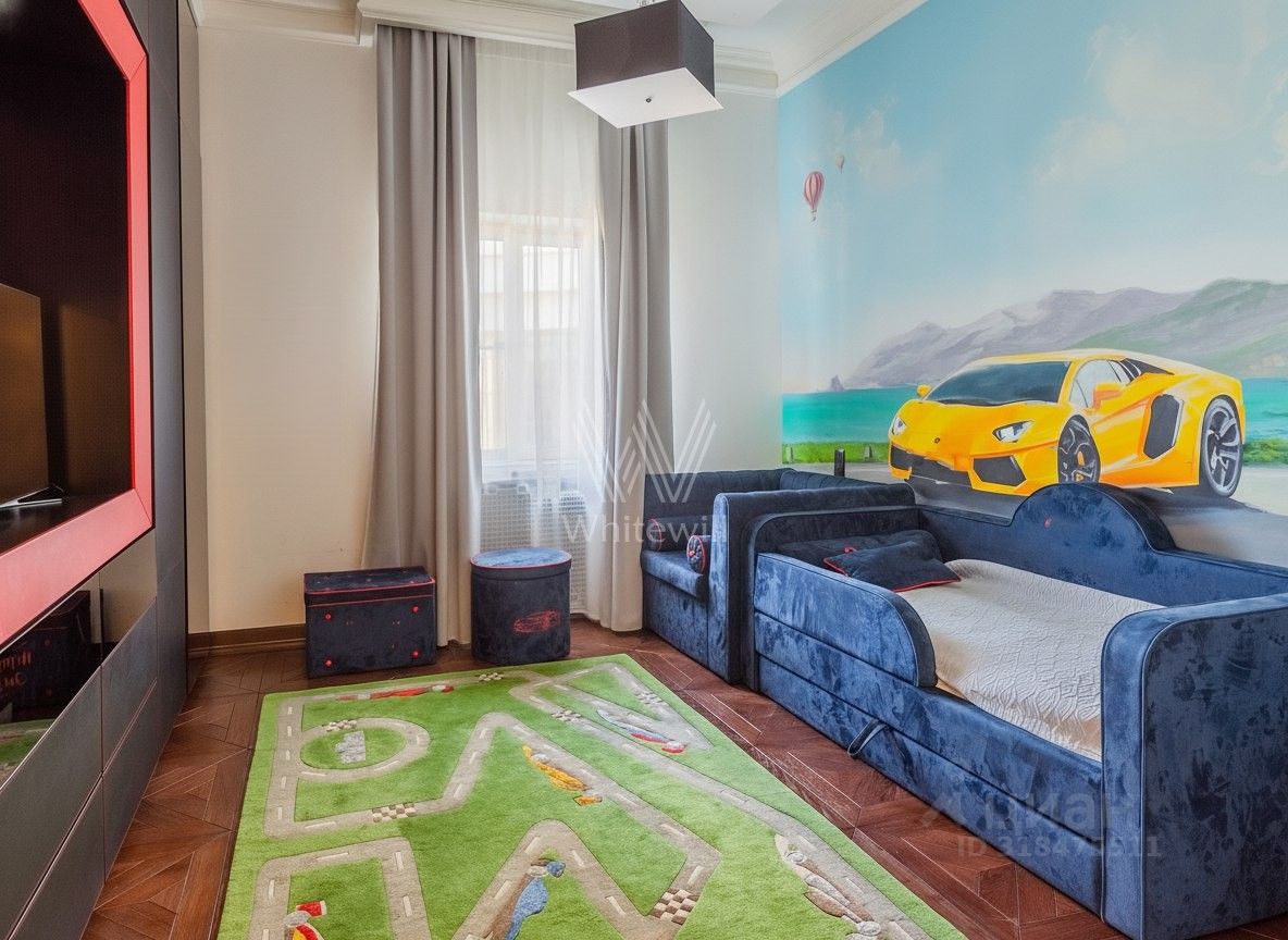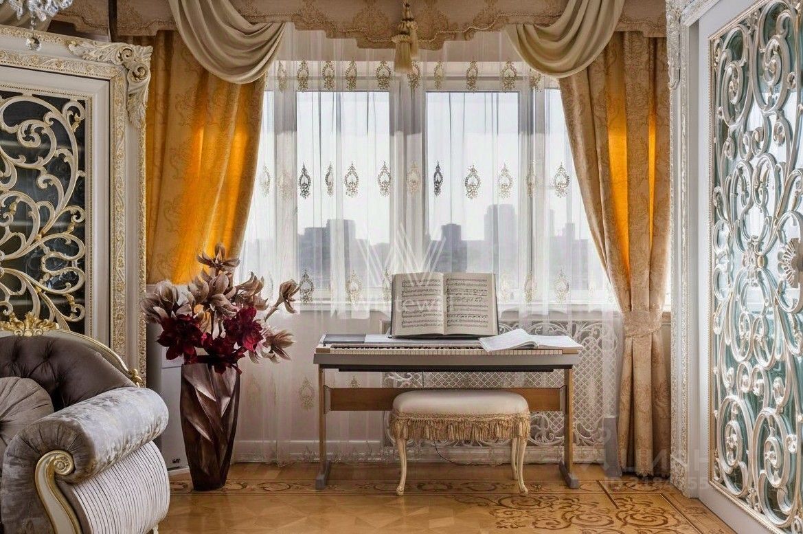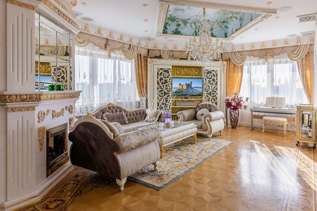 Эксклюзив Whitewill. Квартира с четырьмя спальнями общей площадью 205 м² в клубном доме ''Лужники Хаус'' в Хамовниках. На этаже всего две квартиры, что обеспечивает дополнительную приватность. Выполнена авторская отделка в дворцовом стиле, интерьеры украшают колонны, дизайнерские люстры, резные и лепные детали, венчающий карниз и графика на стенах и потолках.