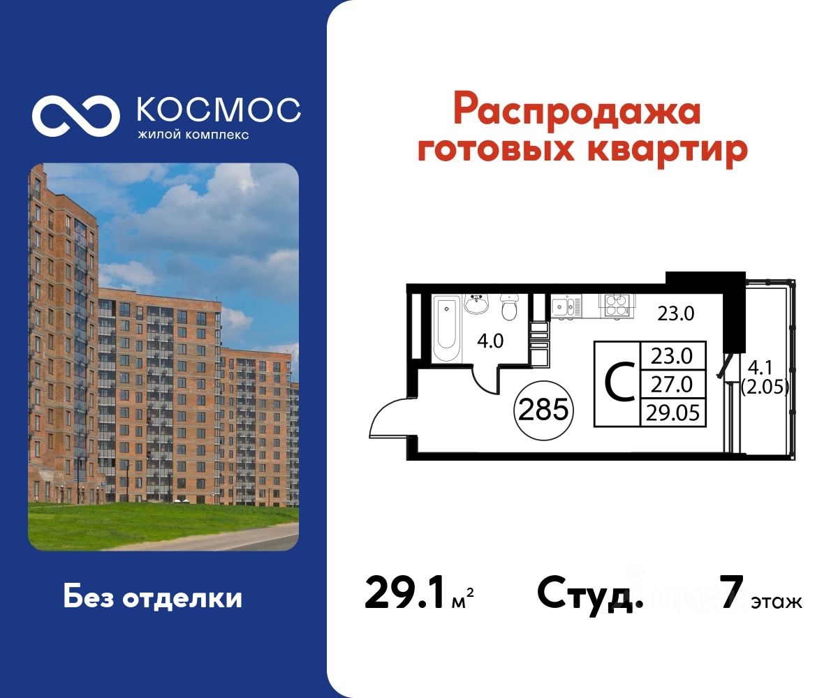 Продаётся студия в сданном доме (Корпус 7), срок сдачи: 2-кв. 2025, общей площадью 29.05 кв.м., на 7 этаже.