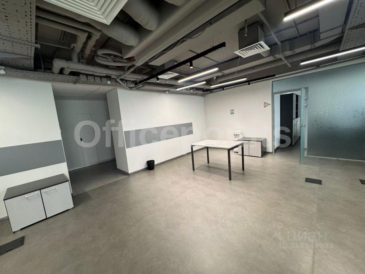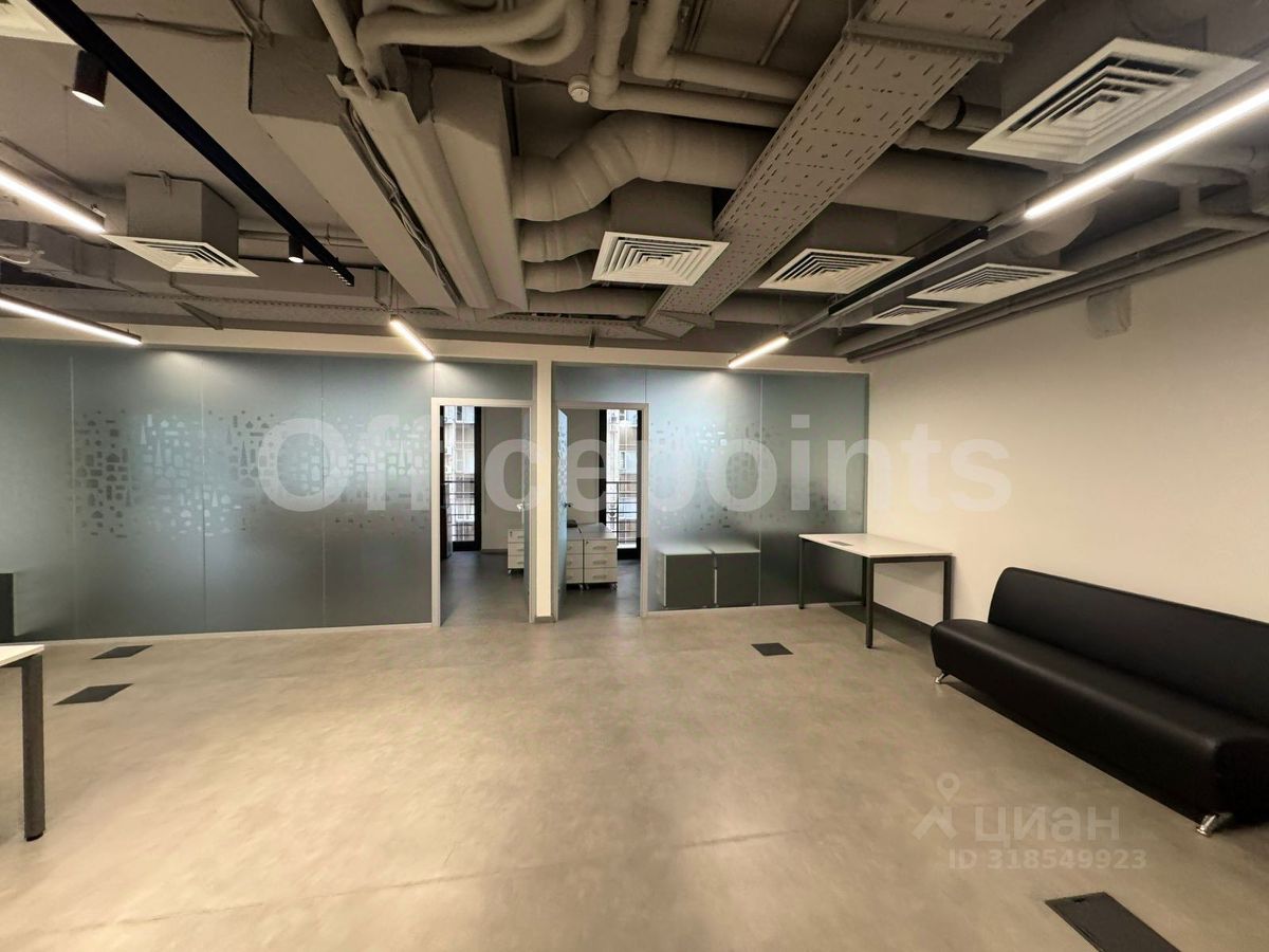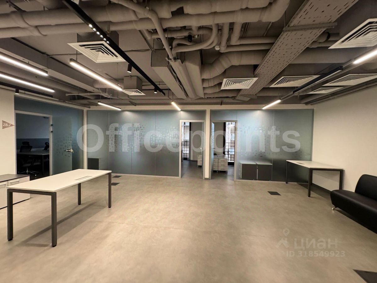 В помещении выполнена офисная отделка, с мебелью, кабинетная планировка.