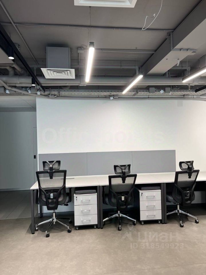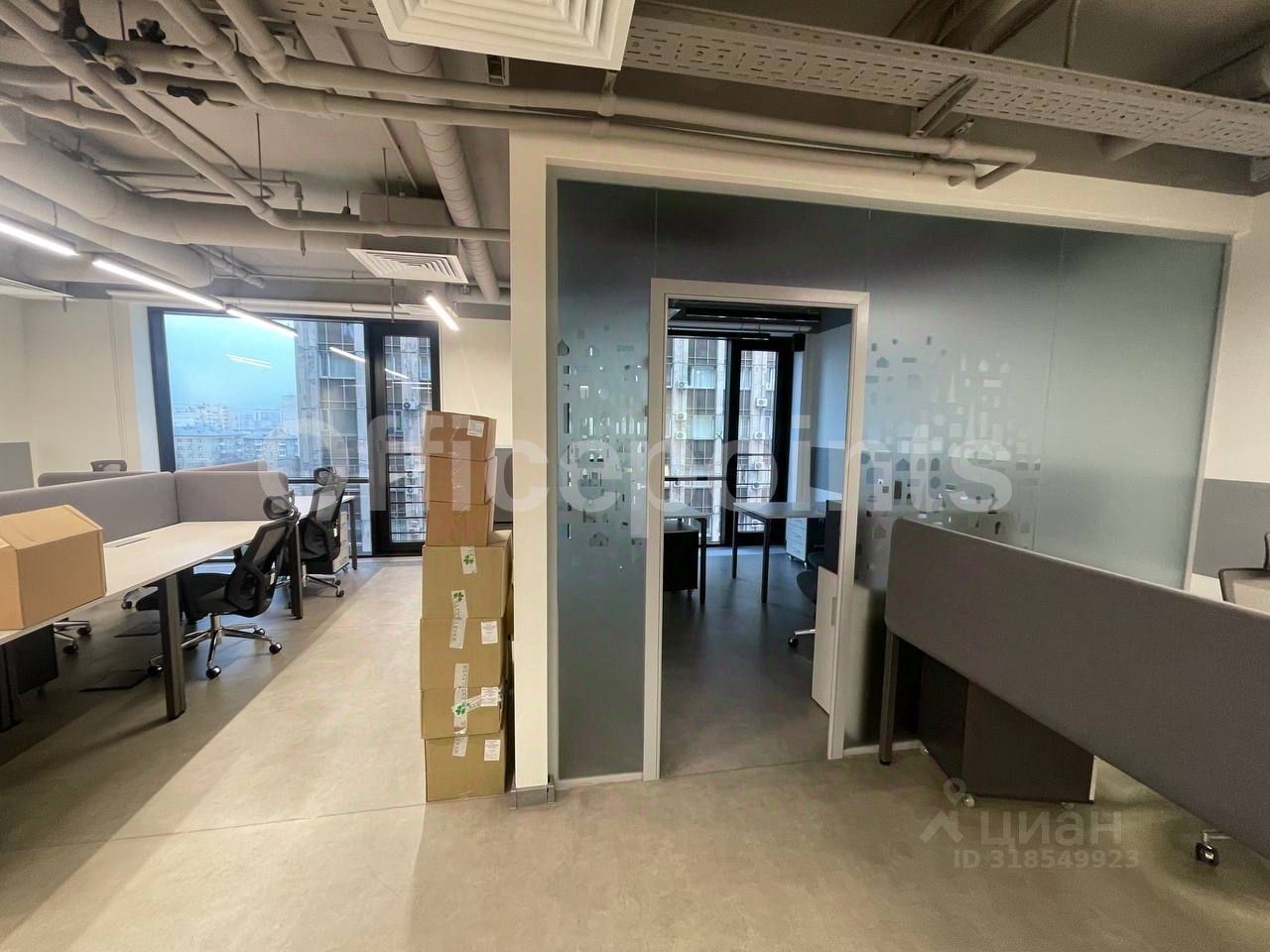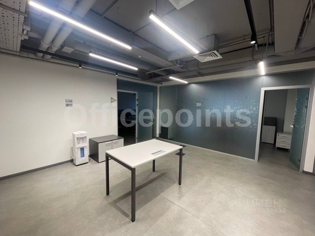 В помещении выполнена офисная отделка, с мебелью, кабинетная планировка.