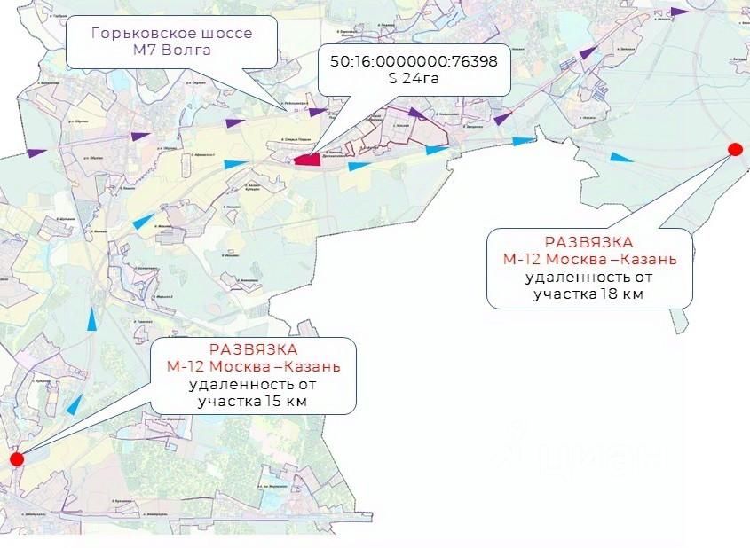 Участок расположен примерно на равном удалении от двух развязок скоростной трассы М12 Восток 18 и 15 км.