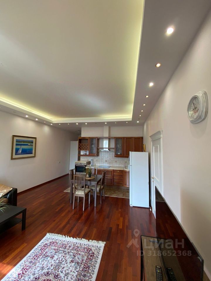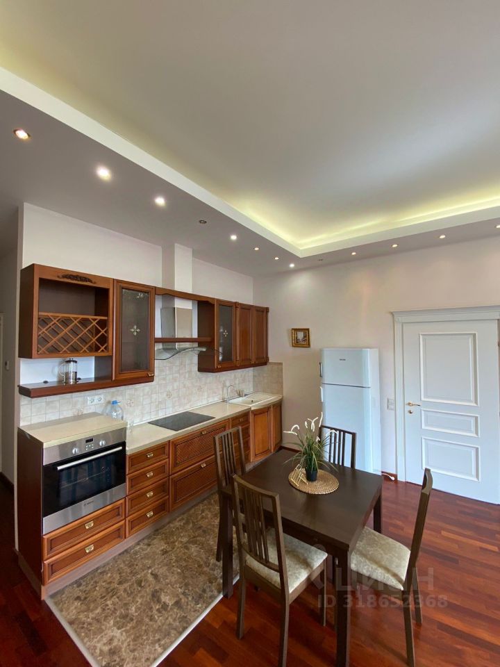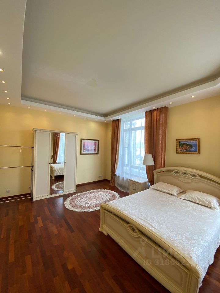 После евроремонта, обставлена новой, современной мебелью и необходимой бытовой техникой, включая посудомоечную машину, духовку, стиральную машинку, телевизор, кондиционер, санузел с джакузи, панорамные окна. На полу паркет - красное дерево.