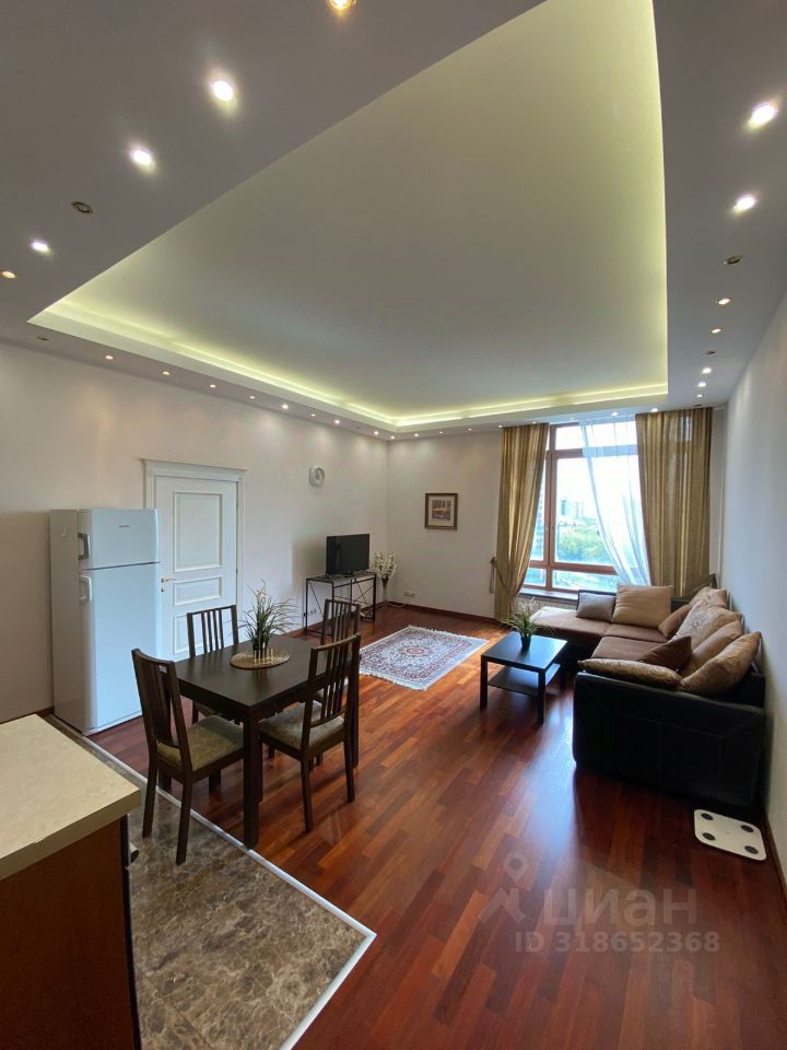 Двухкомнатная квартира в монолитном доме на 19 этаже в 12 секции площадью 75 кв м. Кухня-столовая совмещена с просторным залом, 1 спальня, 2 санузла.