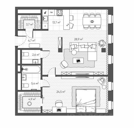 Элегантный апартамент в сердце Москвы — рядом с Кремлём. Просторный апартамент площадью 88,4 м² с предчистовой отделкой.