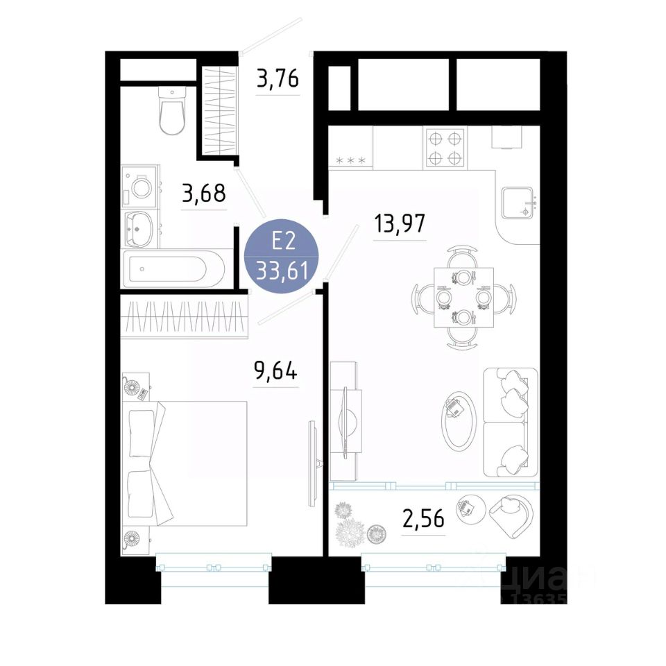 Общая площадь33,61 м2