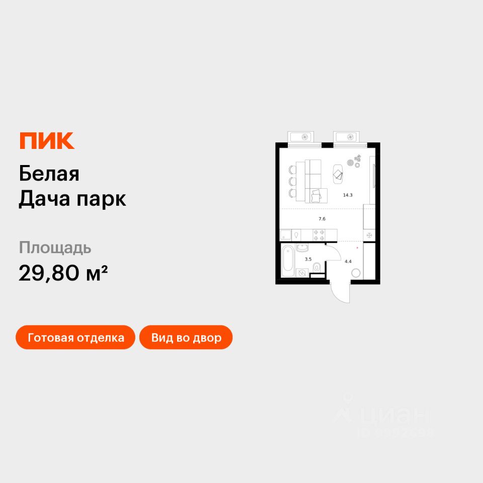 Продаётся квартира-студия площадью 29,8 кв.м на 2 этаже 25 этажного дома (Корпус 16.2, Секция 5) проекта ПИК Белая Дача парк. Светлый просторный подъезд на уровне земли, функциональная планировка, большие окна, c отделкой.