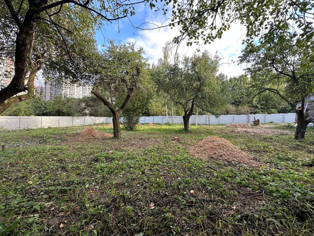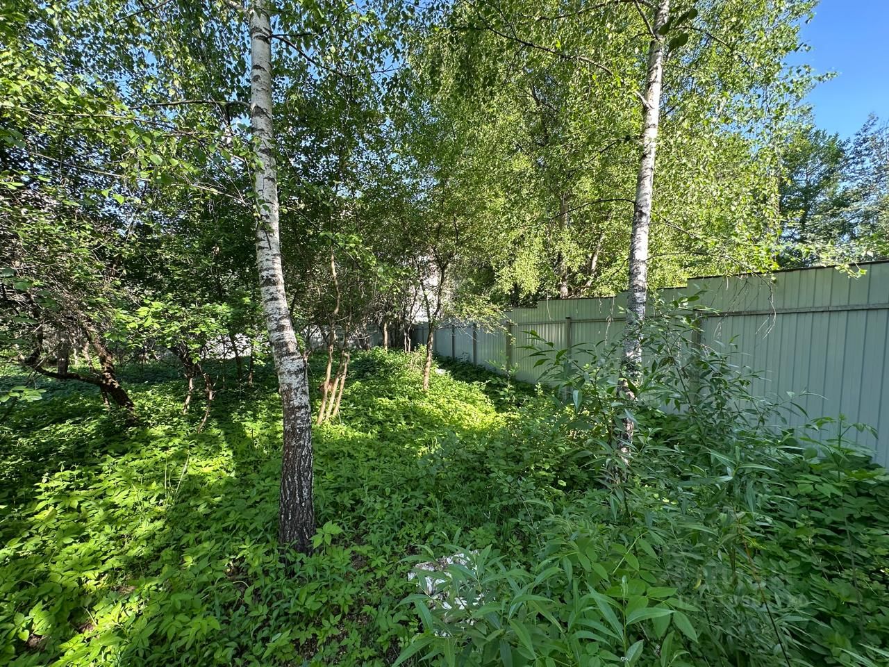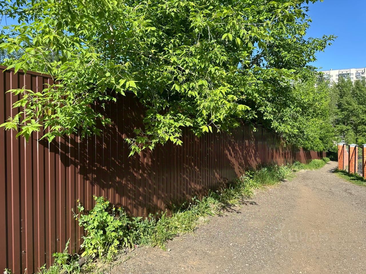 Участок огорожен забором из профнастила.
