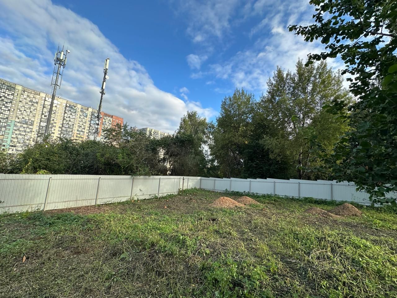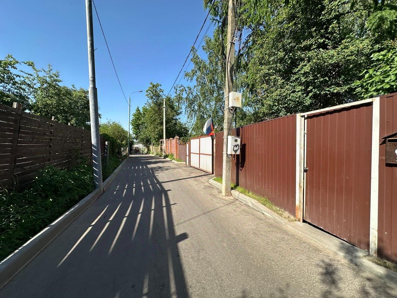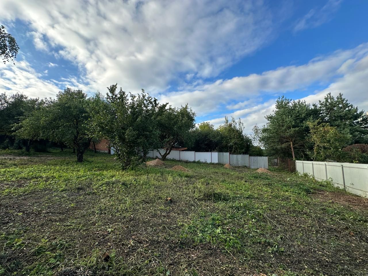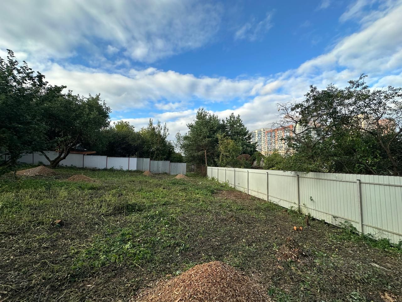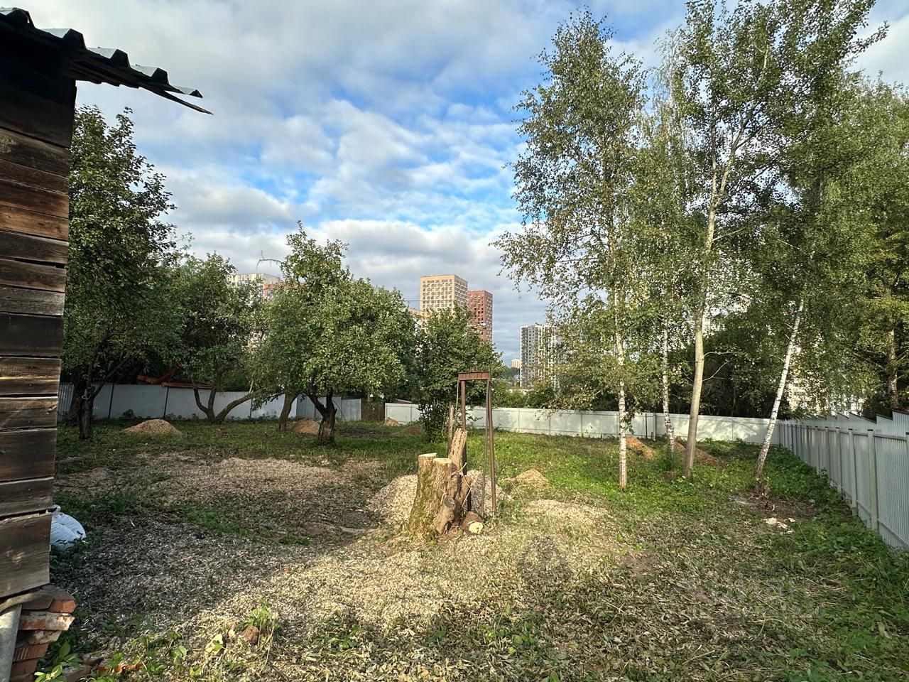 Участок огорожен забором из профнастила.