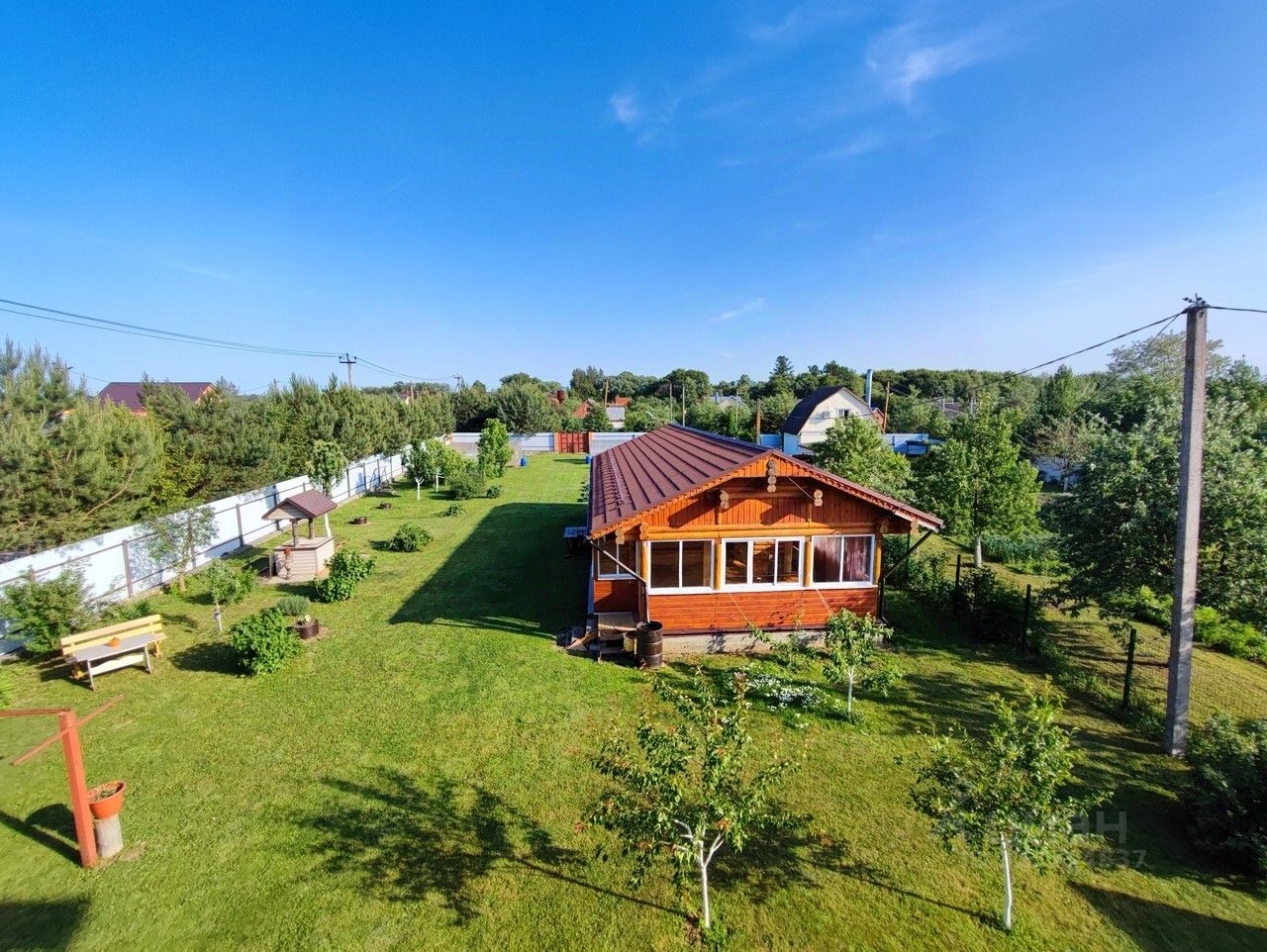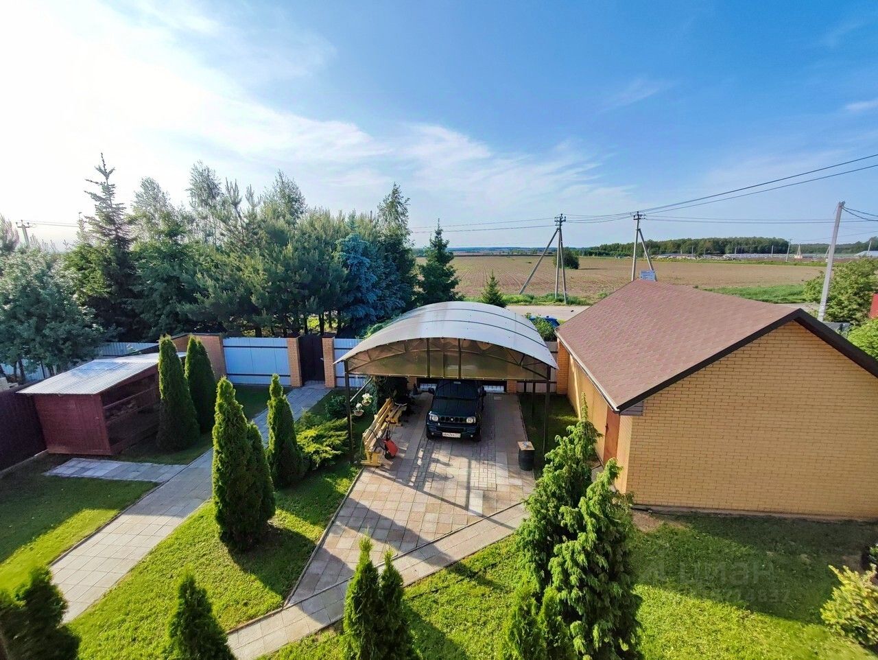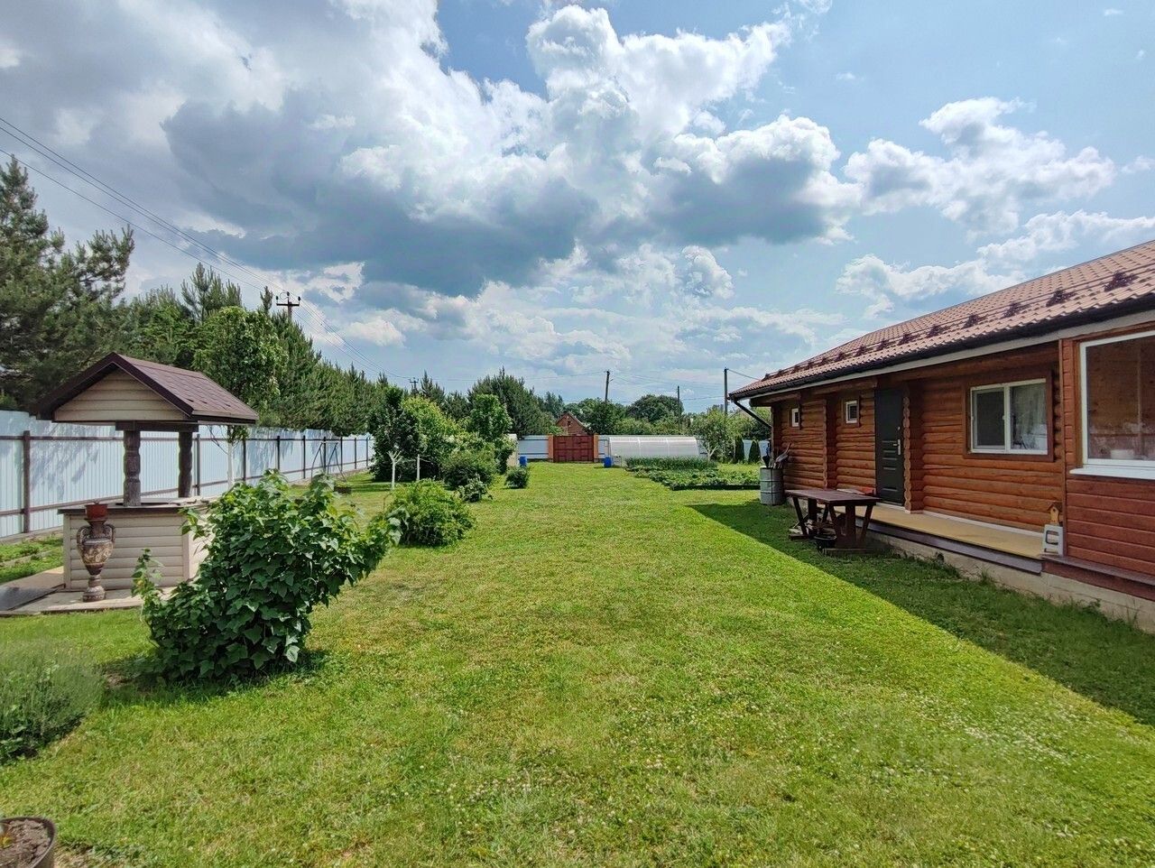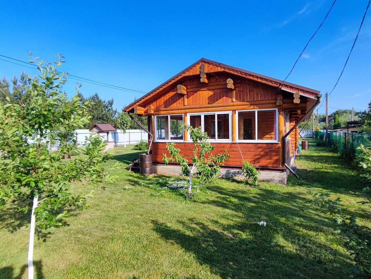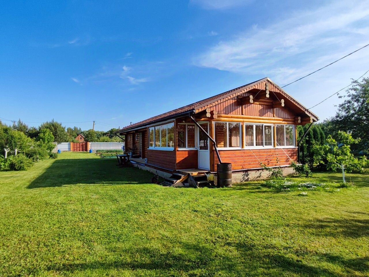 Территория участка огорожена и ухожена. На ней располагается кирпичный гараж 35 кв.м. и гостевой дом-баня из Вологодского бревна с парилкой и просторной гостиной для отдыха. Круглогодичный асфальтированный подъезд к дому с двух сторон.