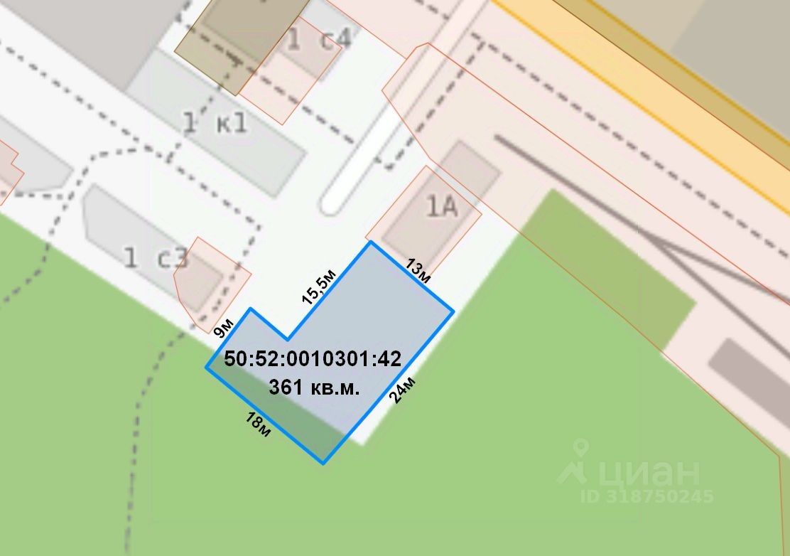 Площадь участка под зданием 361 кв.м.