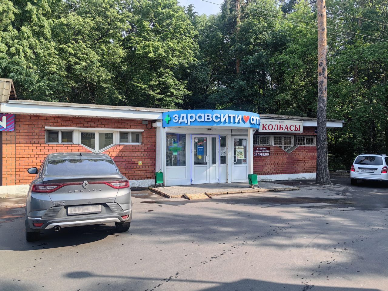 Здание кирпичное. В данный момент площади занимают аптека и магазин мясной продукции.
