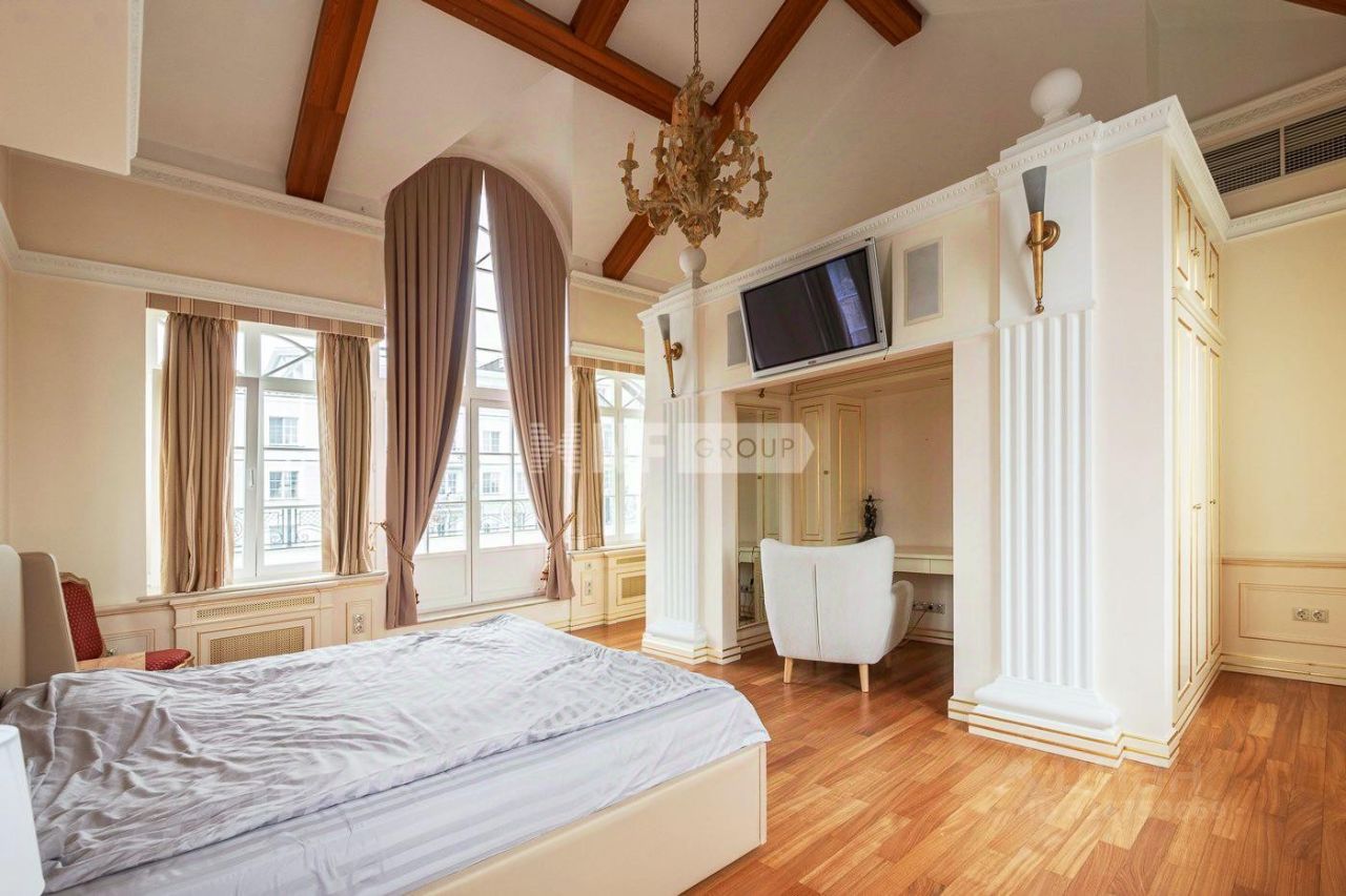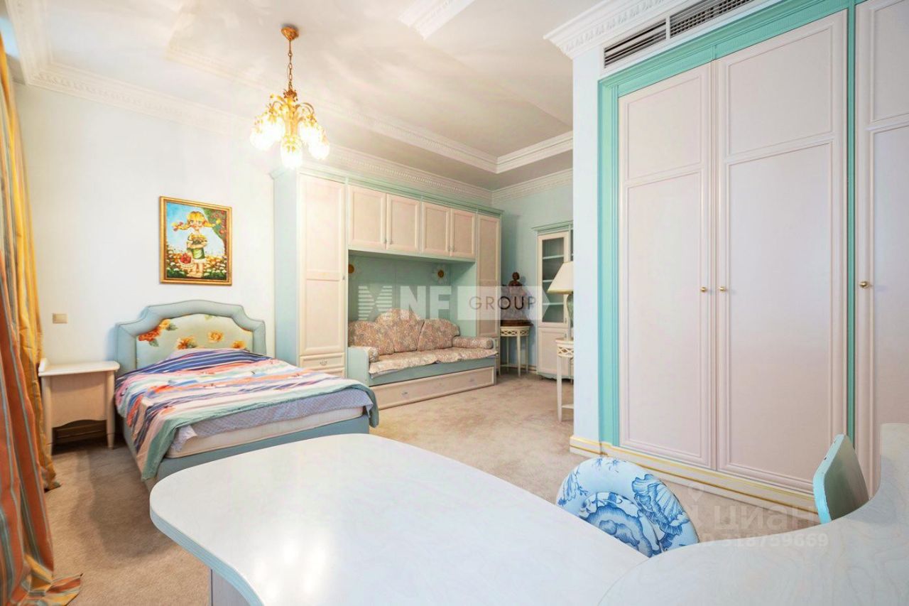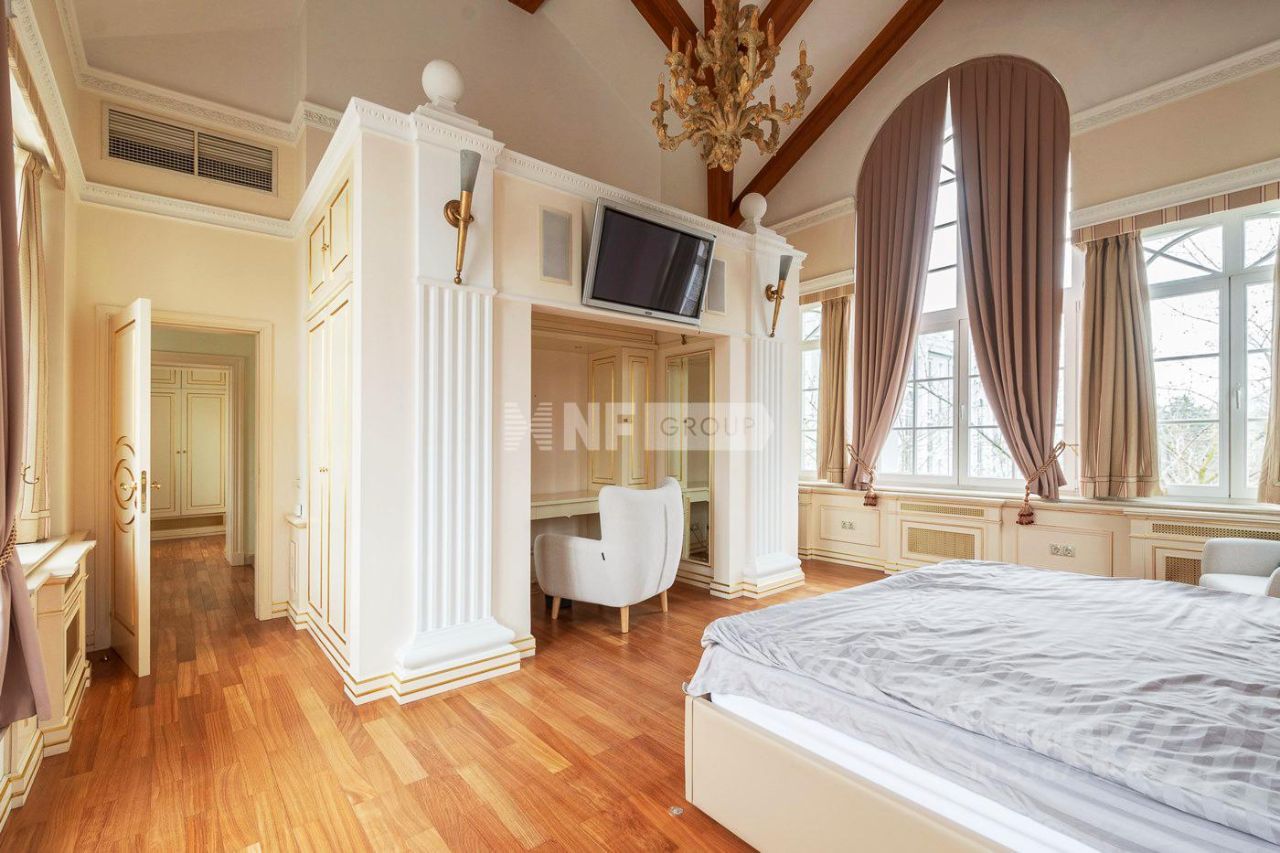 Планировка включает в себя: - гостиную-кухню с обеденной зоной, - пять спален, - пять санузлов, - кабинеты, - терраса, - гардеробные и хозяйственные помещения. Высота потолков 3,2 м.