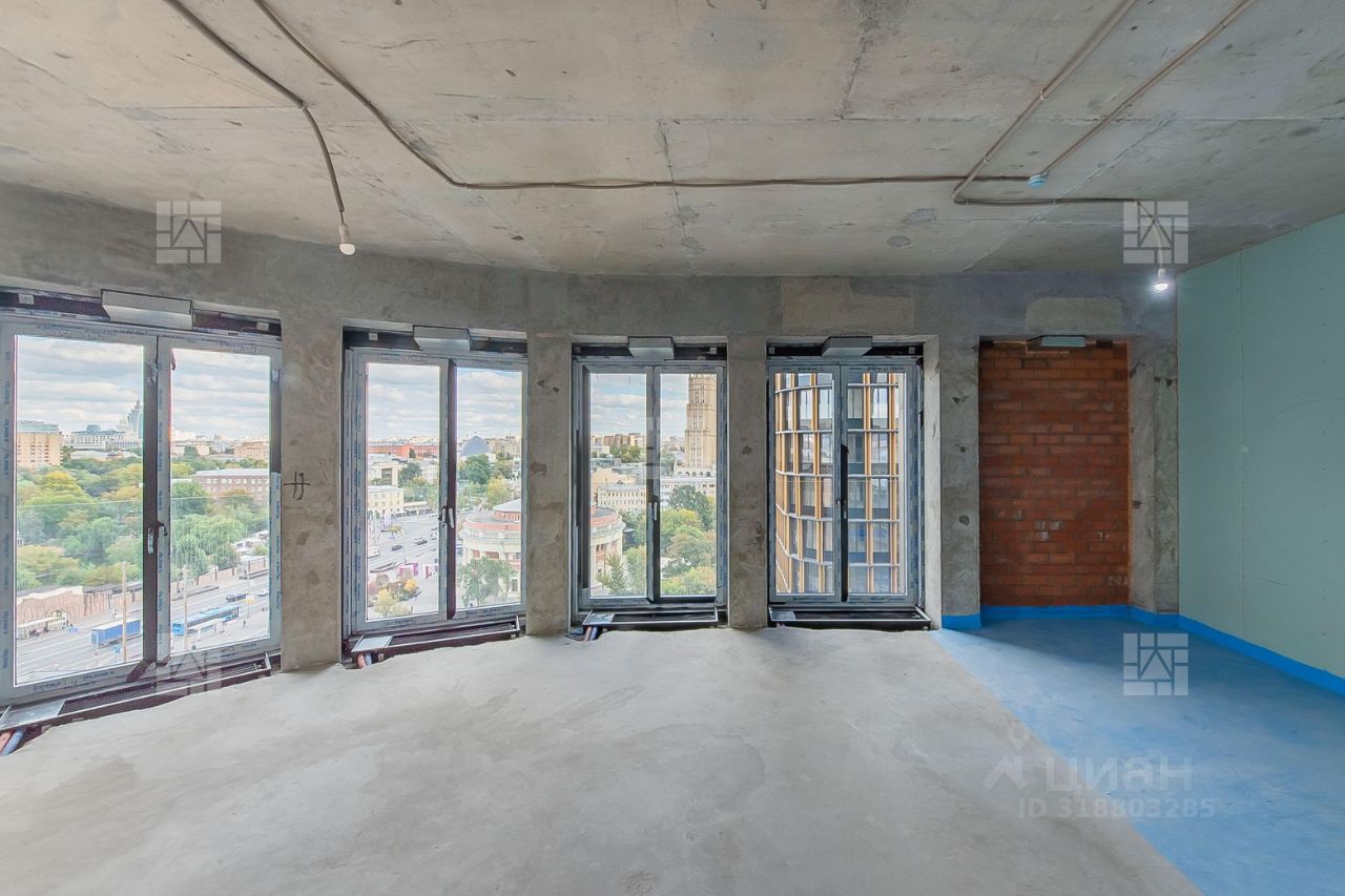 В апартаменте 11 окон и очень удобная планировка - кухня гостиная имеет открытый вид на пруд Московского зоопарка, гостевой санузел, далее располагается приватная зона: детская спальня/кабинет со своим полноценным санузлом и мастер спальня со своей гардеробной и своим санузлом. Апартамент расположен в середине башни - на комфортном 11 этаже. Высота потолков 3,4 метра без отделки.