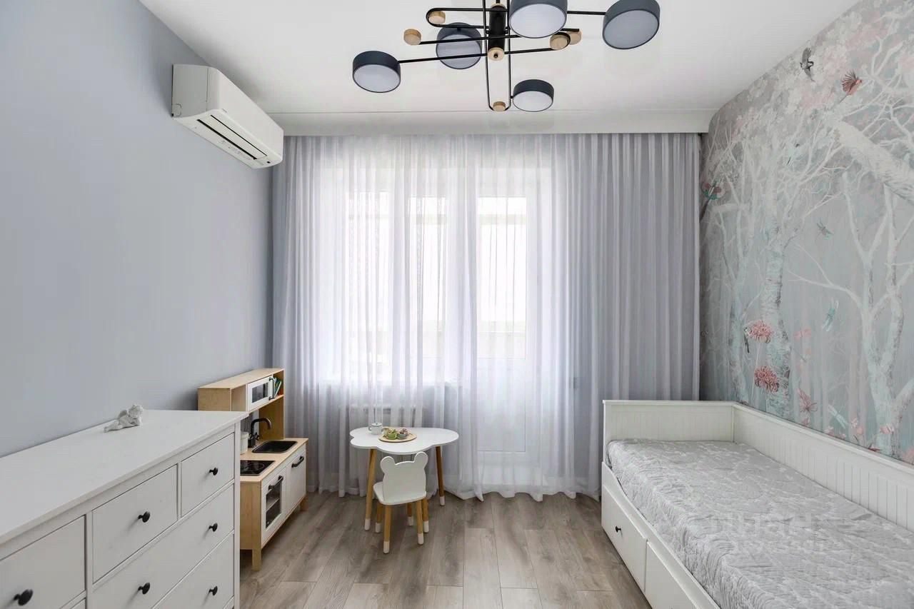 Планировка:кухня-гостиная с зоной отдыха,спальня с гардеробной,детская,есть балкон.