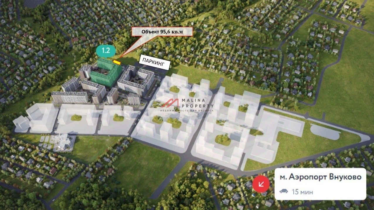 Продажа углового торгового помещения площадью 95,6 м2 в ЖК комфорт класса ''Родные кварталы'' к.1.2 (10 минут на авто от метро Аэропорт Внуково и метро Пыхтино).