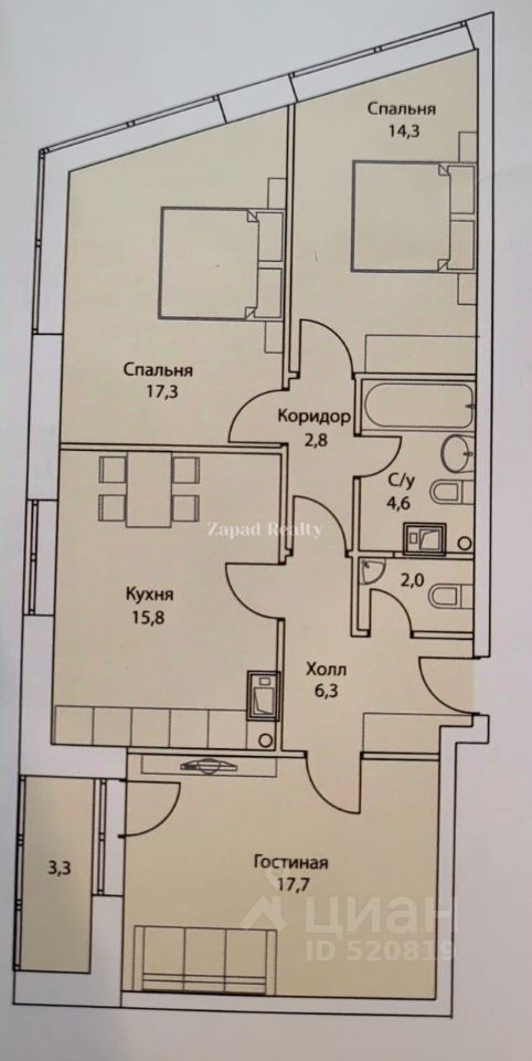 Арт. 107519756 Продается трёхкомнатная квартира с прекрасным видом на благоустроенный двор!