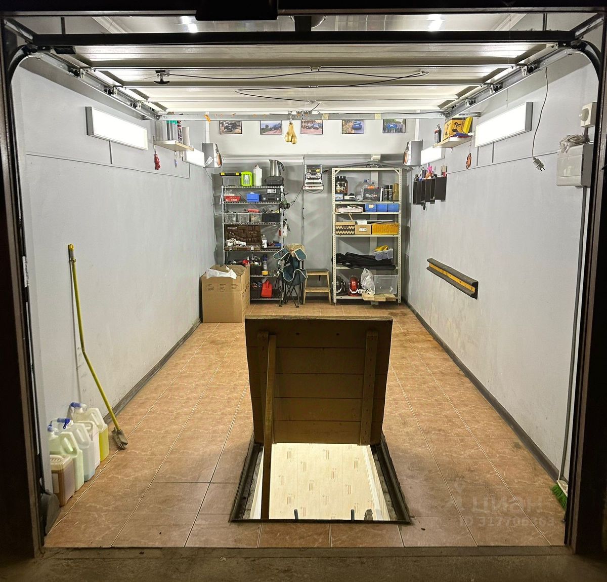 Есть стеллажи, можете добавить свои, на это достаточно места. Личные вещи, которые на фото - уберут. Удобная смотровая яма, это еще одно пространство для хранения помимо двух помещений. Весь гараж после капитального ремонта, пол везде в плитке, полноценное качественное освещение во всех помещениях, есть датчик движения для удобства, свет зажигается сам. В гараже установлены автоматические ворота Herman, что добавляет комфорта в эксплуатации.